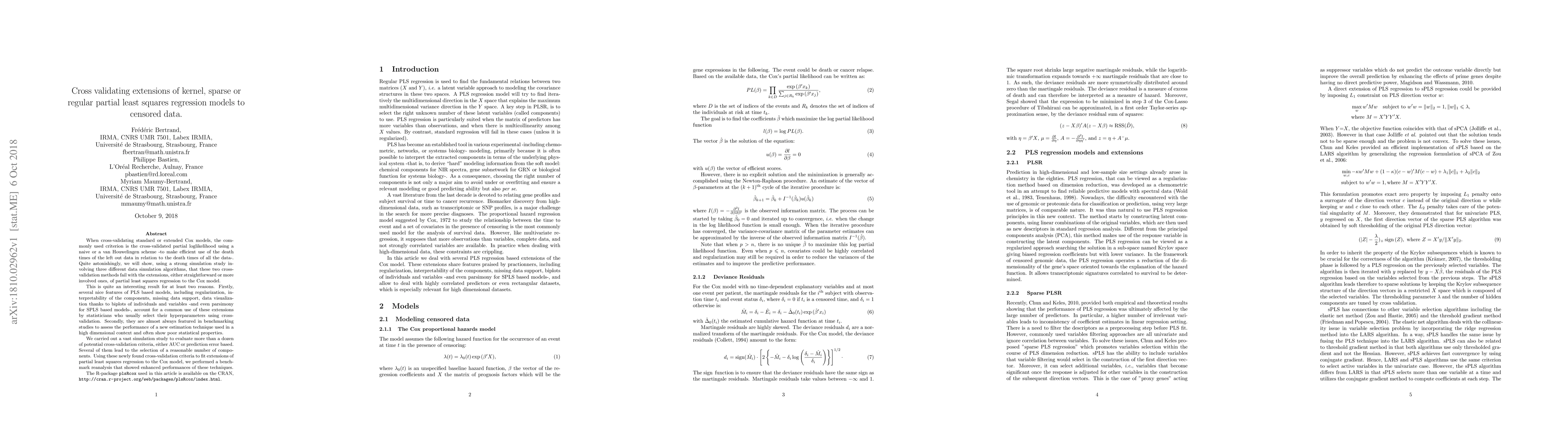 This paper investigates the failure of traditional cross-validation methods for extended partial least squares regression models applied to censored data, revealing significant shortcomings in existing approaches. A robust new cross-validation criterion, the integrated R Schmid Score weighted, was developed and demonstrated to improve model performance in high-dimensional contexts.