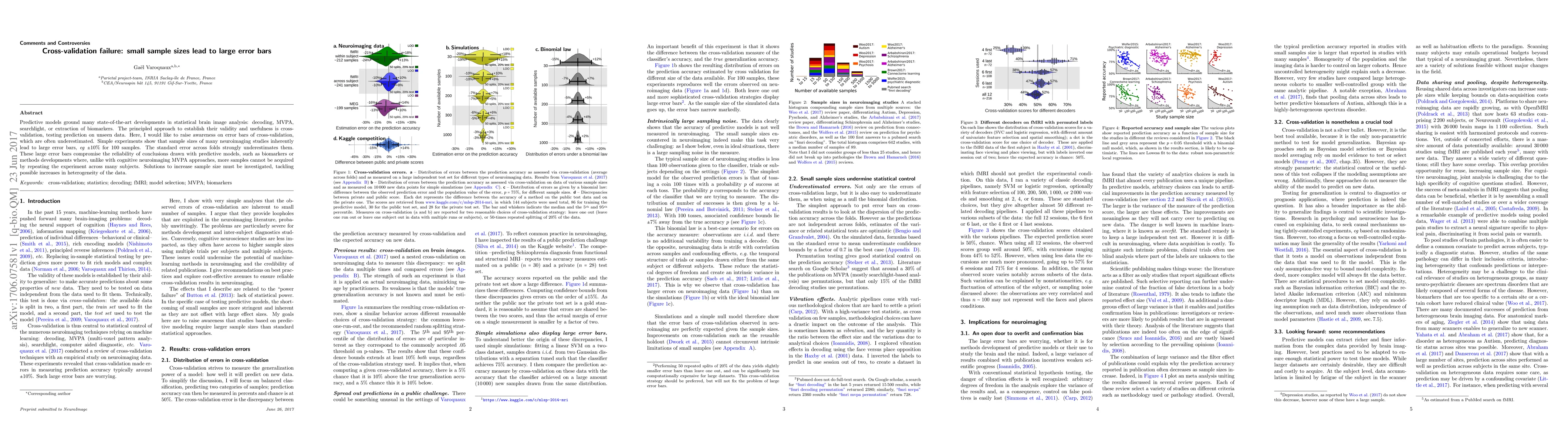 This paper highlights that small sample sizes in neuroimaging studies lead to large error bars in cross-validation, which are often underestimated. It emphasizes the need for solutions to increase sample size to improve the reliability of predictive models and conclusions drawn from them.