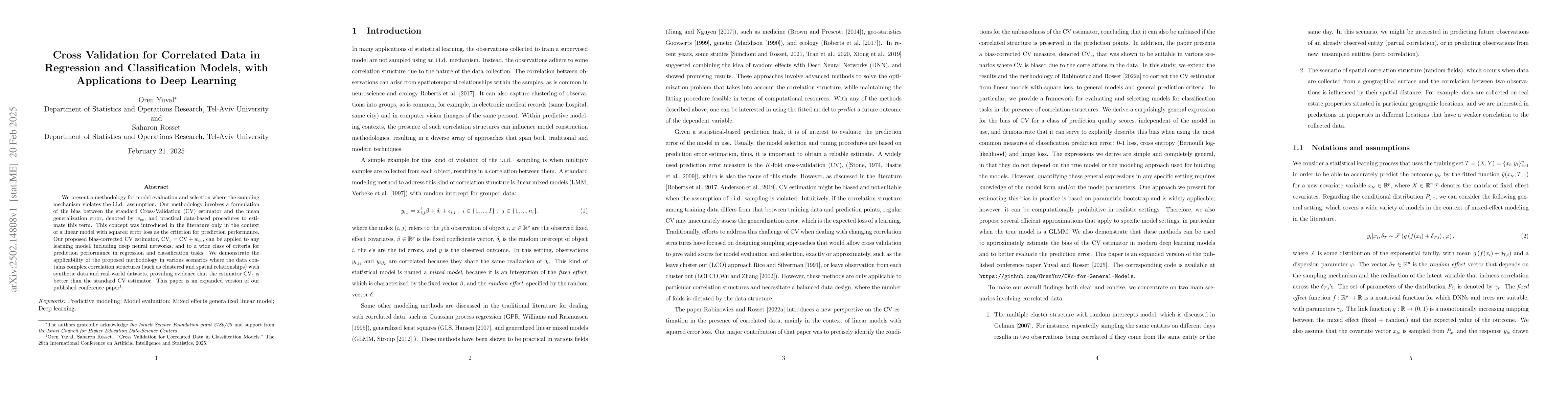 The research extends existing CV methodologies by explicitly addressing biases that arise from correlated data, which is a common scenario in modern machine learning applications, especially with deep learning models. The proposed method's adaptability to various models and loss functions represents a significant advancement over previous work limited to linear models with squared error loss.