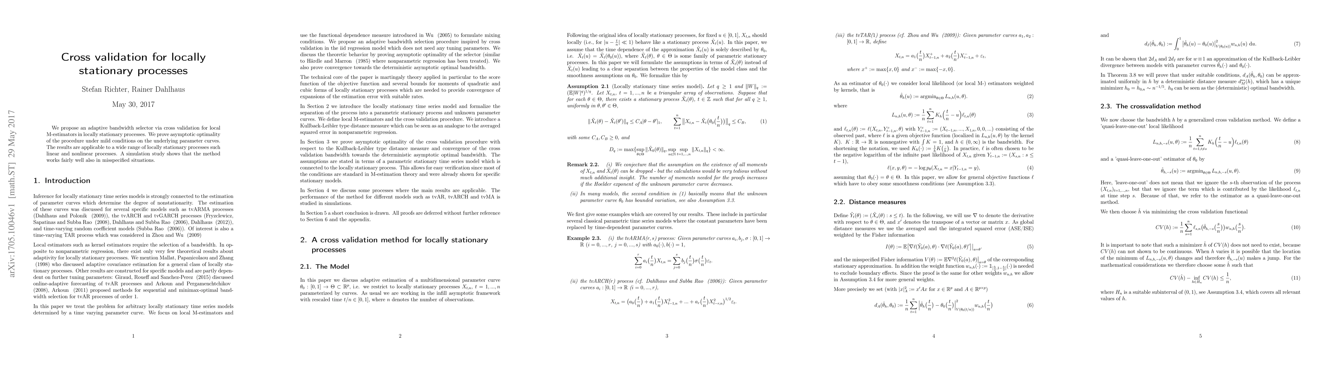 This paper proposes an adaptive bandwidth selector using cross validation for local M-estimators in locally stationary processes, proving its asymptotic optimality under mild conditions. Simulation results indicate the method's effectiveness even in misspecified scenarios.