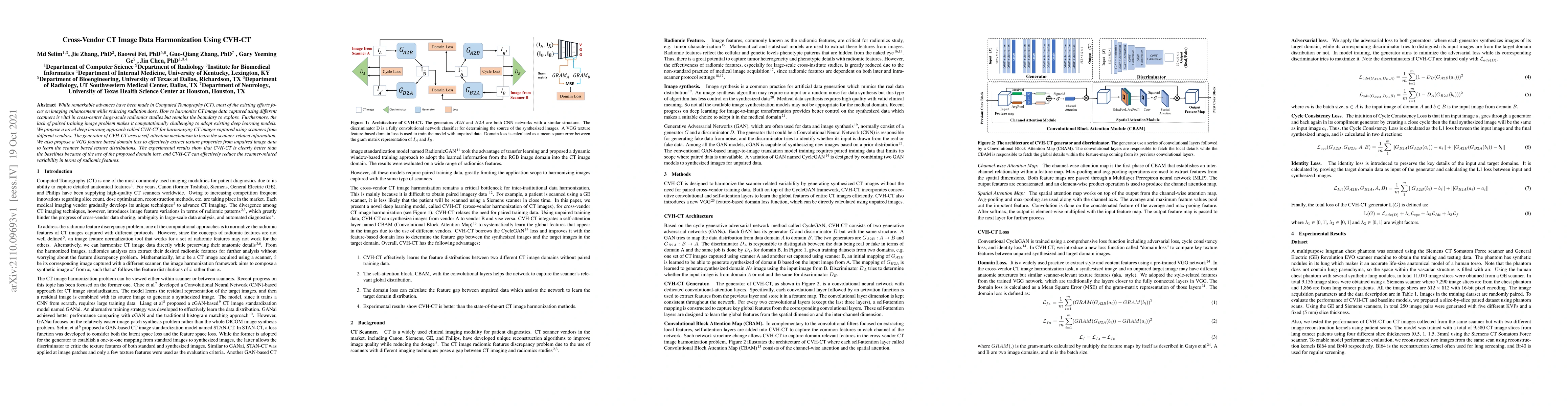 The research introduces CVH-CT, a deep learning method for harmonizing CT images from different vendors' scanners, which is crucial for cross-center radiomics studies. CVH-CT uses self-attention for scanner-related info learning and a VGG feature-based domain loss for texture property extraction, outperforming baselines in reducing scanner variability in radiomic features.