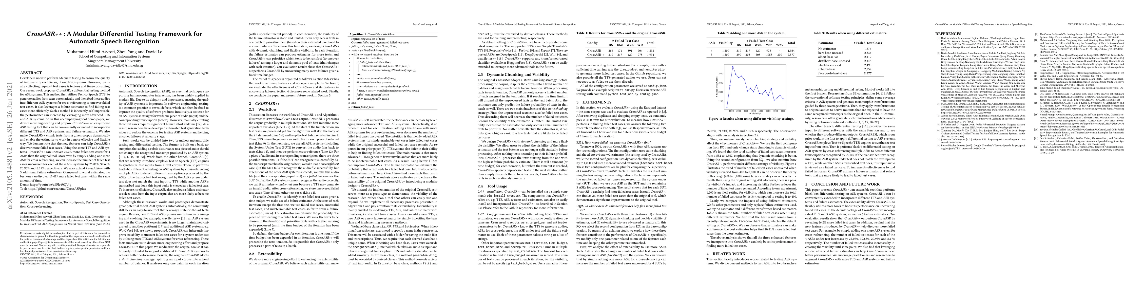 CrossASR++ is an enhanced modular testing framework for Automatic Speech Recognition (ASR) systems, designed to automate and improve the discovery of failed test cases. It dynamically chunks texts and incorporates various Text-to-Speech and ASR systems, uncovering 26.2% more failed test cases than the original CrossASR tool.