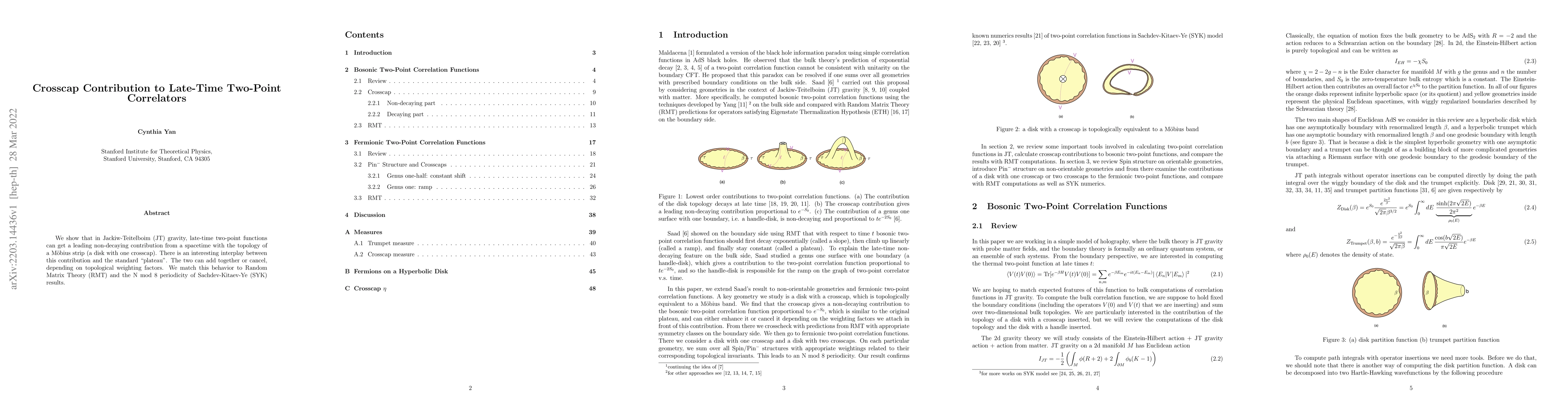 Research in Jackiw-Teitelboim gravity reveals that late-time two-point functions can receive a non-decaying contribution from a spacetime with a Mobius strip topology, mirroring behavior seen in Random Matrix Theory and Sachdev-Kitaev-Ye results.