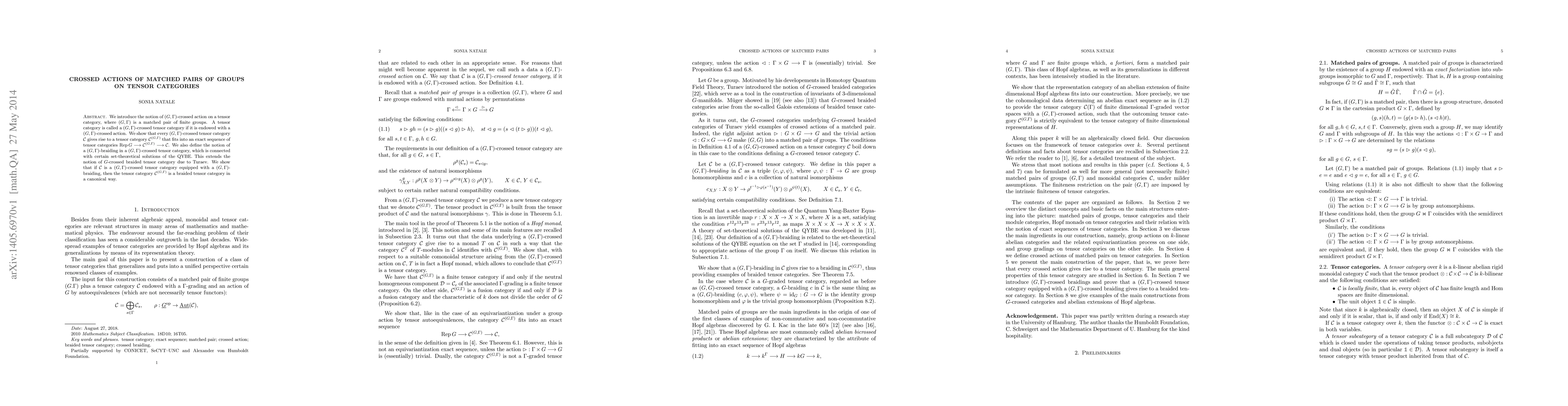 This paper introduces the concept of $(G, Gamma)$-crossed actions on tensor categories, where $(G, Gamma)$ are matched pairs of finite groups. It demonstrates that each $(G, Gamma)$-crossed tensor category generates another category $mathcal C^{(G, Gamma)}$ via an exact sequence involving $operatorname{Rep} G$. The paper also defines $(G, Gamma)$-braidings, extending Turaev's $G$-crossed braided tensor categories, and proves that $mathcal C^{(G, Gamma)}$ becomes a braided tensor category with a canonical structure when $mathcal C$ has a $(G, Gamma)$-braiding.