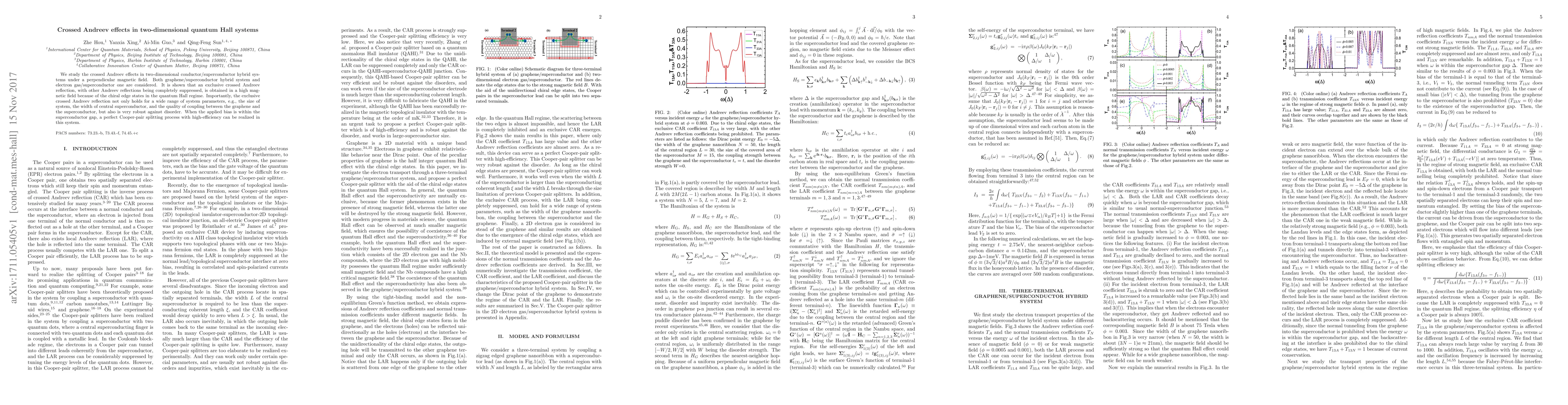 This paper investigates the crossed Andreev effects in two-dimensional quantum Hall systems with hybrid conductor/superconductor interfaces, revealing exclusive crossed Andreev reflection in high magnetic fields due to chiral edge states. The robustness of this effect against various parameters and disorder enables efficient Cooper-pair splitting within the superconductor gap.