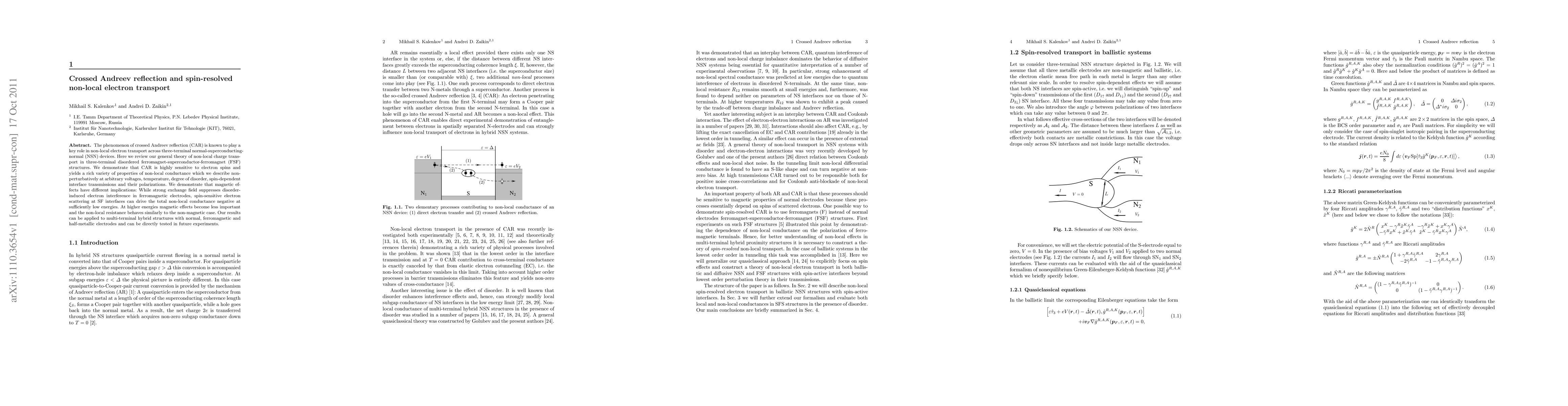 This paper reviews a theory of non-local electron transport in three-terminal FSF structures, emphasizing the role of crossed Andreev reflection and its spin-dependent effects. The study reveals that magnetic effects can either suppress interference or drive non-local conductance negative, depending on energy and disorder conditions.