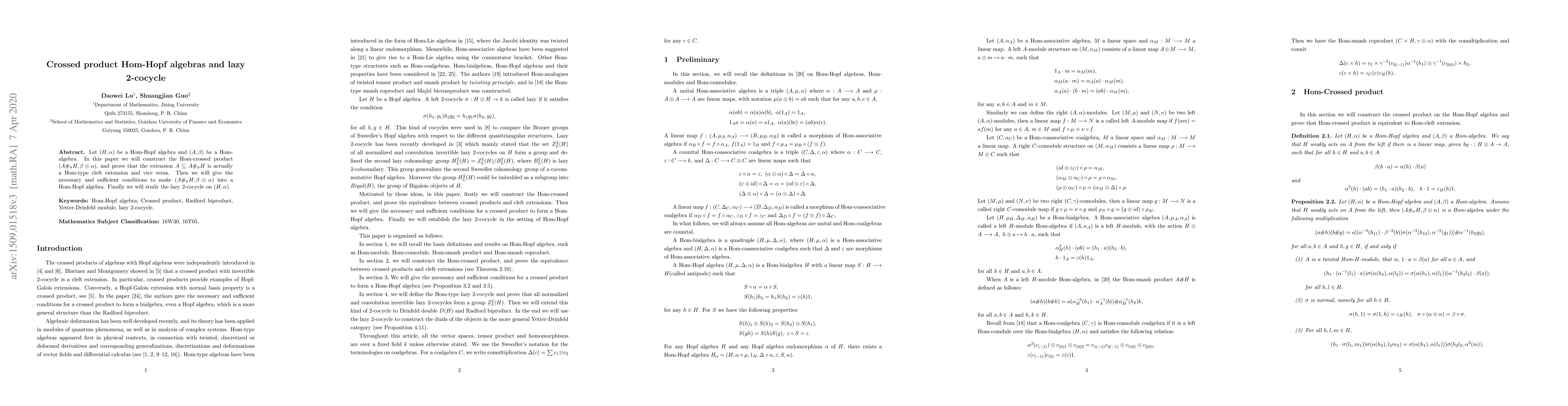 This paper constructs the Hom-crossed product $(A\#_\sigma H,\b\o\a)$ of a Hom-Hopf algebra $(H,\a)$ and a Hom-algebra $(A,\b)$, proving it to be a Hom-type cleft extension. It also provides necessary and sufficient conditions for $(A\#_\sigma H,\b\o\a)$ to become a Hom-Hopf algebra and examines the lazy 2-cocycle on $(H,\a)$.