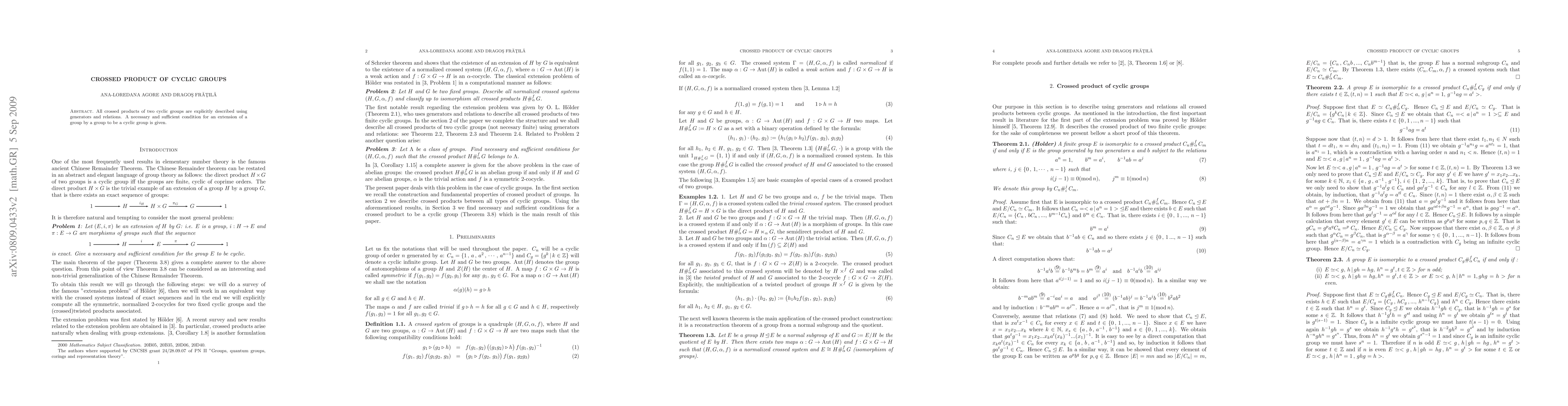 All crossed products of two cyclic groups are explicitly described using generators and relations. A necessary and sufficient condition for an extension of a group by a group to be a cyclic group is given.