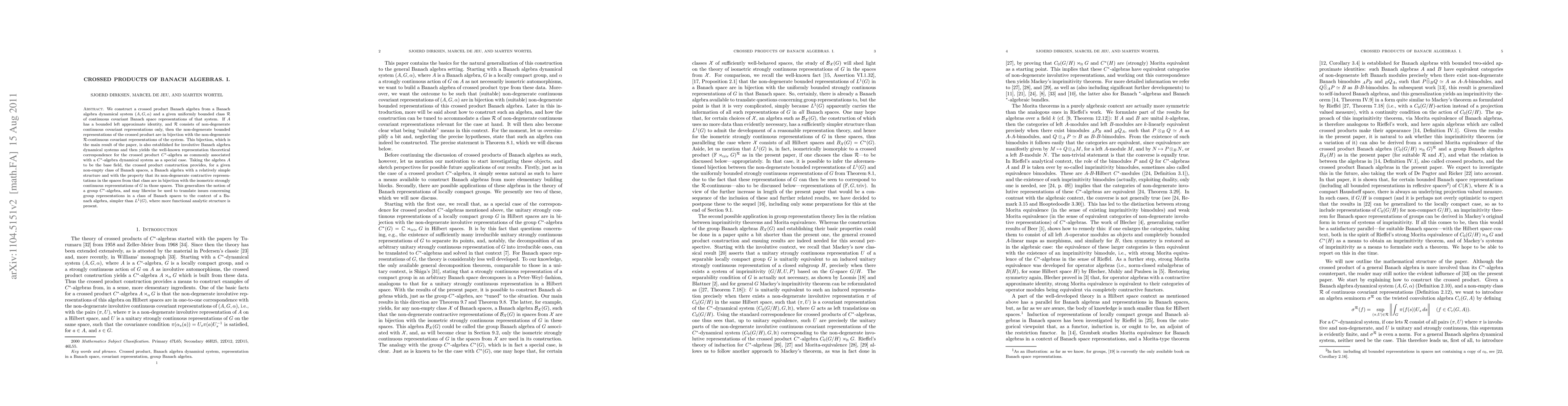 This paper constructs a crossed product Banach algebra from a Banach algebra dynamical system and a class of continuous covariant representations. It establishes a bijection between non-degenerate representations of the crossed product and certain covariant representations of the system, extending this result to involutive systems and $C^*$-algebras. The construction generalizes group $C^*$-algebras and simplifies representation issues in Banach spaces.