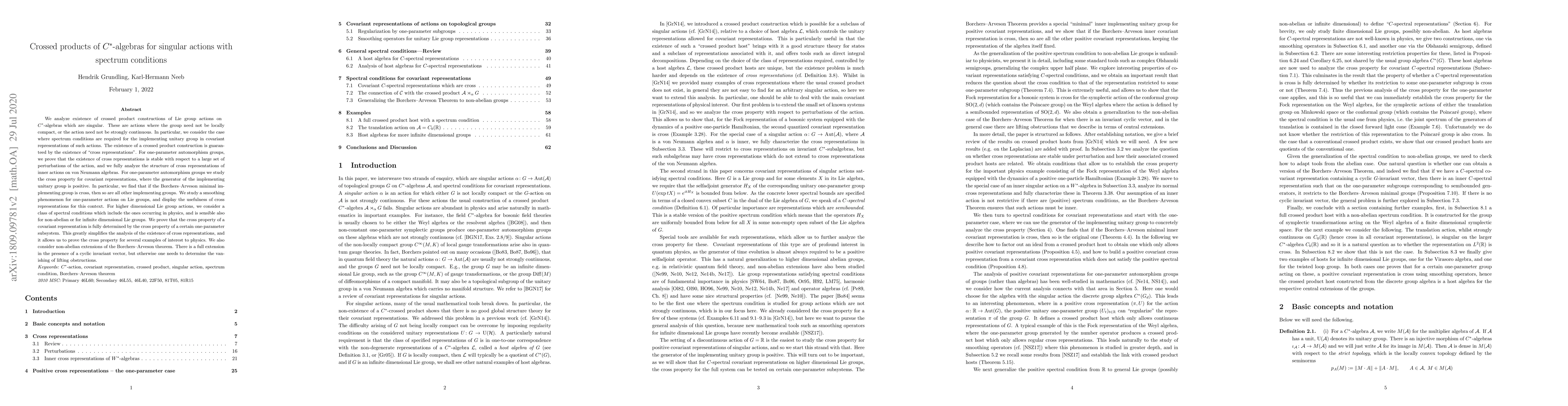 The research employs a combination of C*-algebraic techniques and spectral theory to analyze crossed product constructions for singular Lie group actions with spectrum conditions.