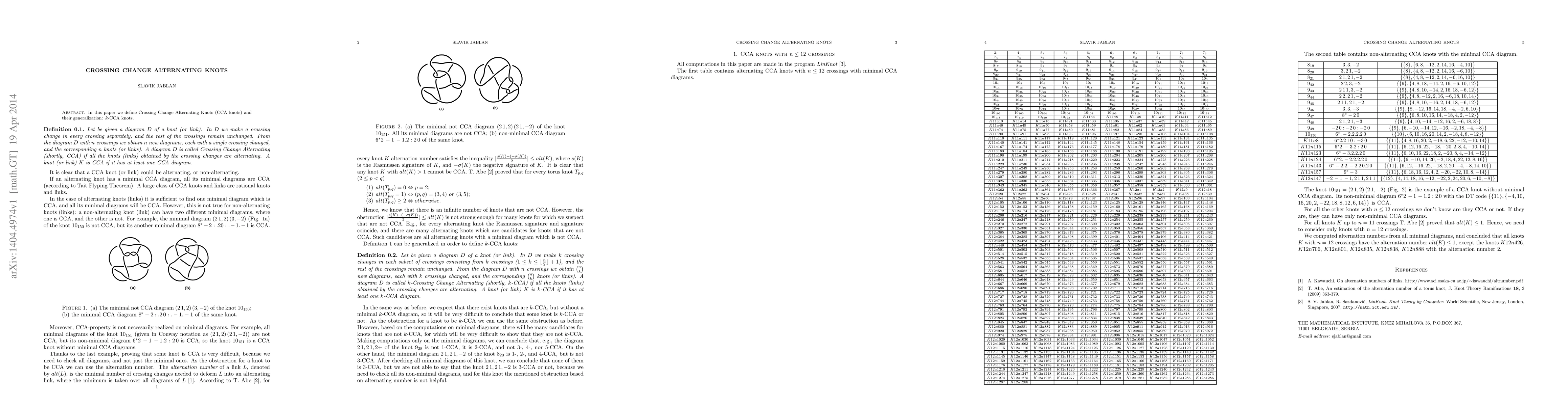 Summary: This paper introduces a new class of knots called Crossing Change Alternating Knots (CCA knots) and extends the concept to $k$-CCA knots, providing a framework for their study and potential applications in knot theory.