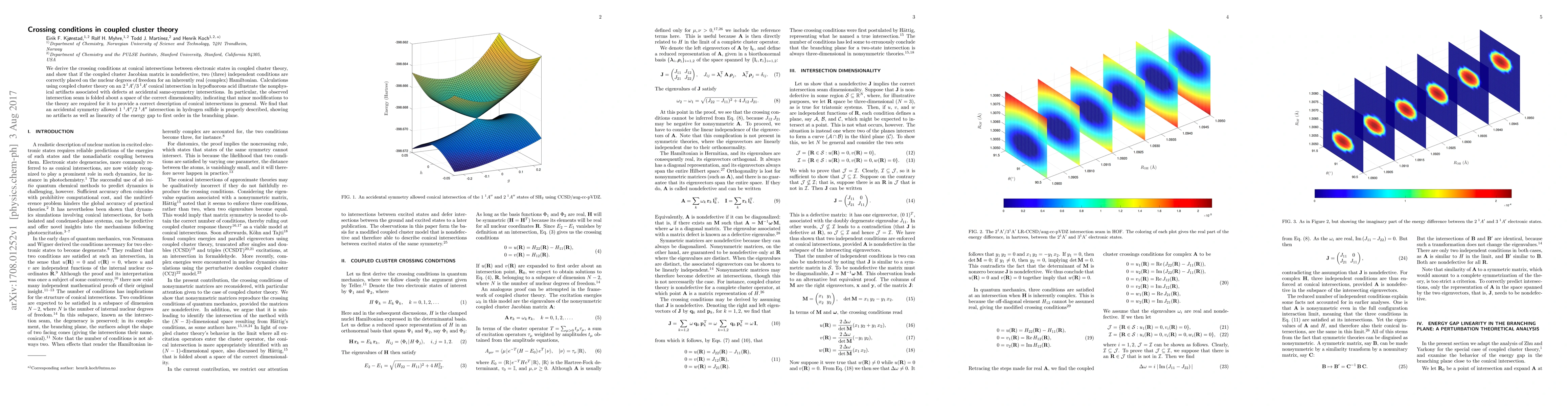 Derivation of crossing conditions at conical intersections in coupled cluster theory, identifying the importance of a nondefective Jacobian matrix for accurate descriptions.