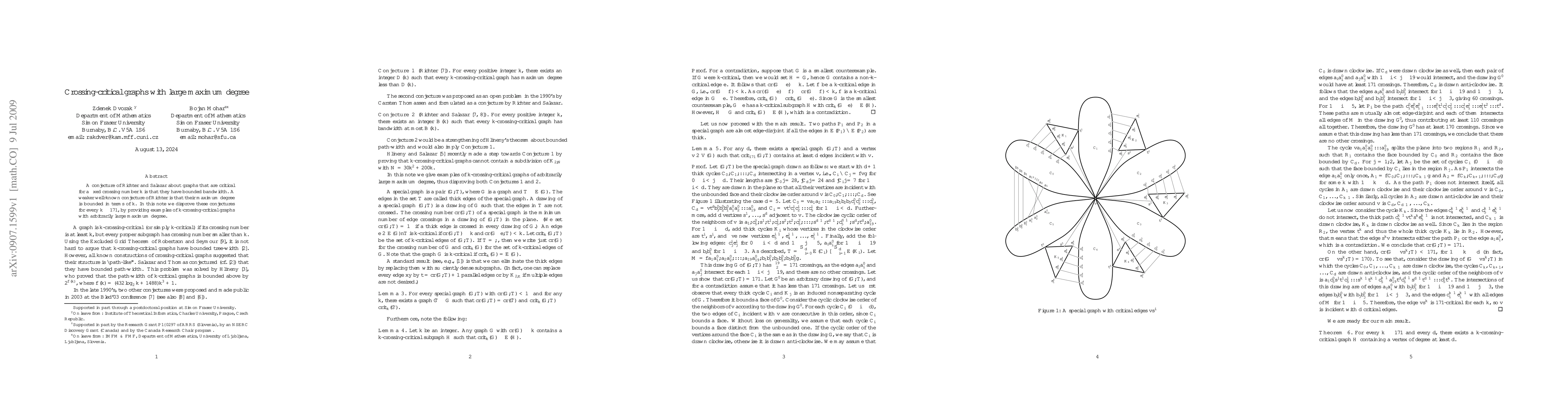 This paper disproves Richter and Salazar's conjecture that graphs critical for a fixed crossing number $k$ have bounded bandwidth and also refutes Richter's conjecture that their maximum degree is bounded by $k$, specifically for $k\ge 171$ through examples of $k$-crossing-critical graphs with large maximum degree.