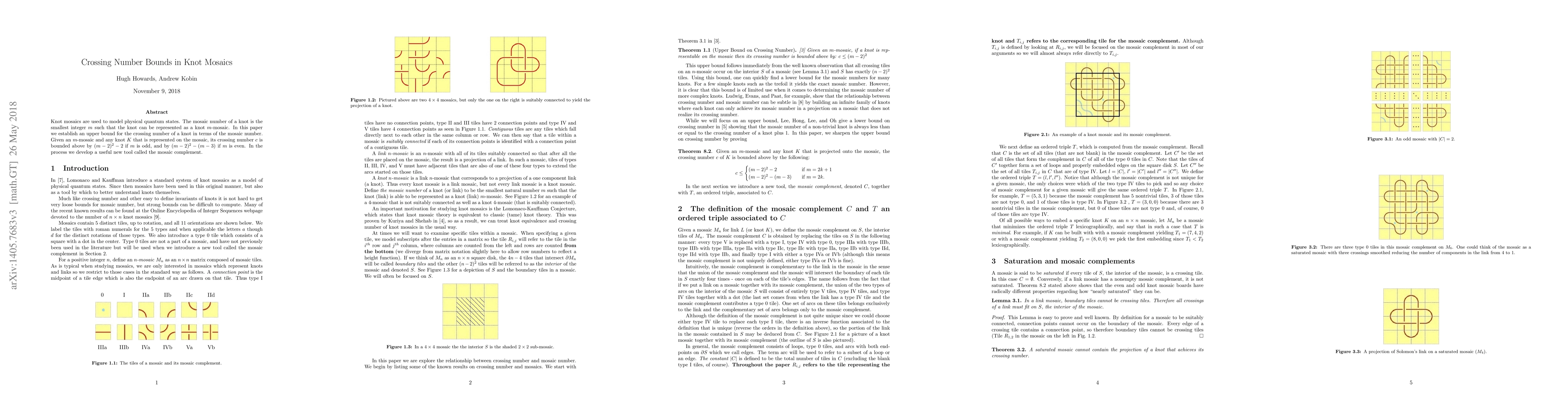 Knot mosaics are used to model physical quantum states. The mosaic number of a knot is the smallest integer $m$ such that the knot can be represented as a knot $m$-mosaic. In this paper we establish an upper bound for the crossing number of a knot in terms of the mosaic number. Given an $m$-mosaic and any knot $K$ that is represented on the mosaic, its crossing number $c$ is bounded above by $(m - 2)^{2} - 2$ if $m$ is odd, and $(m - 2)^{2} - (m - 3)$ if $m$ is even.