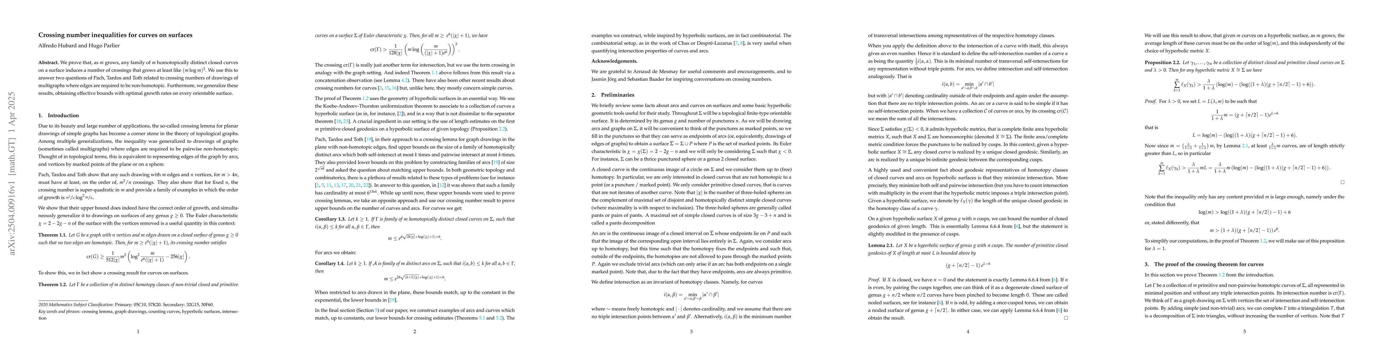 The paper presents novel crossing number inequalities for curves on surfaces, providing effective bounds with optimal growth rates for orientable surfaces.