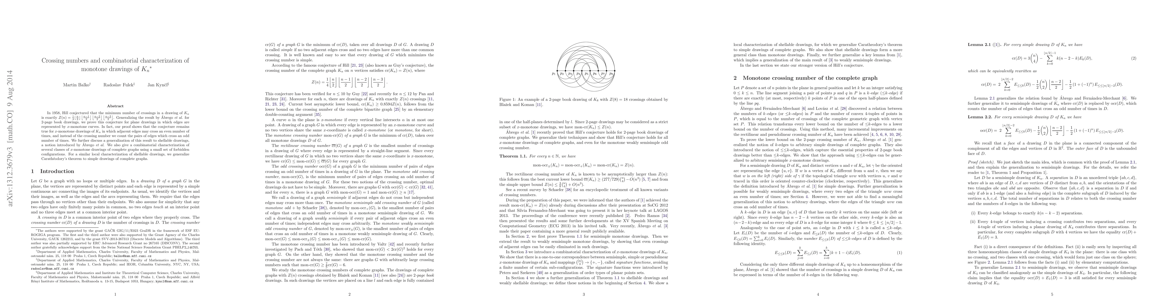 In 1958, Hill conjectured that the minimum number of crossings in a drawing of $K_n$ is exactly $Z(n) = \frac{1}{4} \lfloor\frac{n}{2}\rfloor \left\lfloor\frac{n-1}{2}\right\rfloor \left\lfloor\frac{n-2}{2}\right\rfloor\left\lfloor\frac{n-3}{2}\right\rfloor$. Generalizing the result by \'{A}brego et al. for 2-page book drawings, we prove this conjecture for plane drawings in which edges are represented by $x$-monotone curves. In fact, our proof shows that the conjecture remains true for $x$-monotone drawings of $K_n$ in which adjacent edges may cross an even number of times, and instead of the crossing number we count the pairs of edges which cross an odd number of times. We further discuss a generalization of this result to shellable drawings, a notion introduced by \'{A}brego et al. We also give a combinatorial characterization of several classes of $x$-monotone drawings of complete graphs using a small set of forbidden configurations. For a similar local characterization of shellable drawings, we generalize Carath\'eodory's theorem to simple drawings of complete graphs.