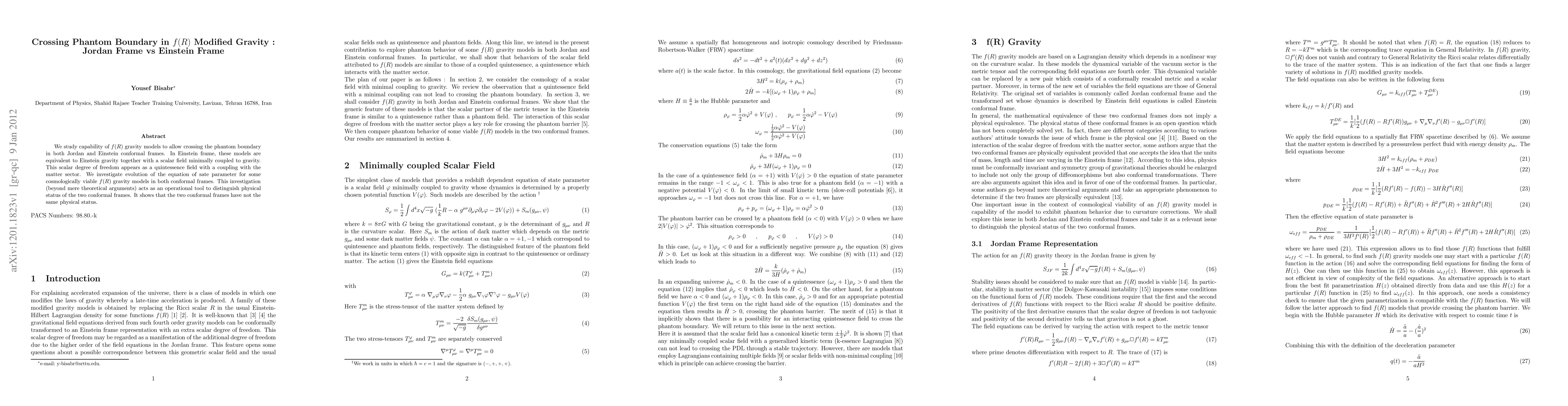 The paper investigates $f(R)$ gravity models in both Jordan and Einstein conformal frames, finding that they have different physical statuses despite being equivalent in the Einstein frame.