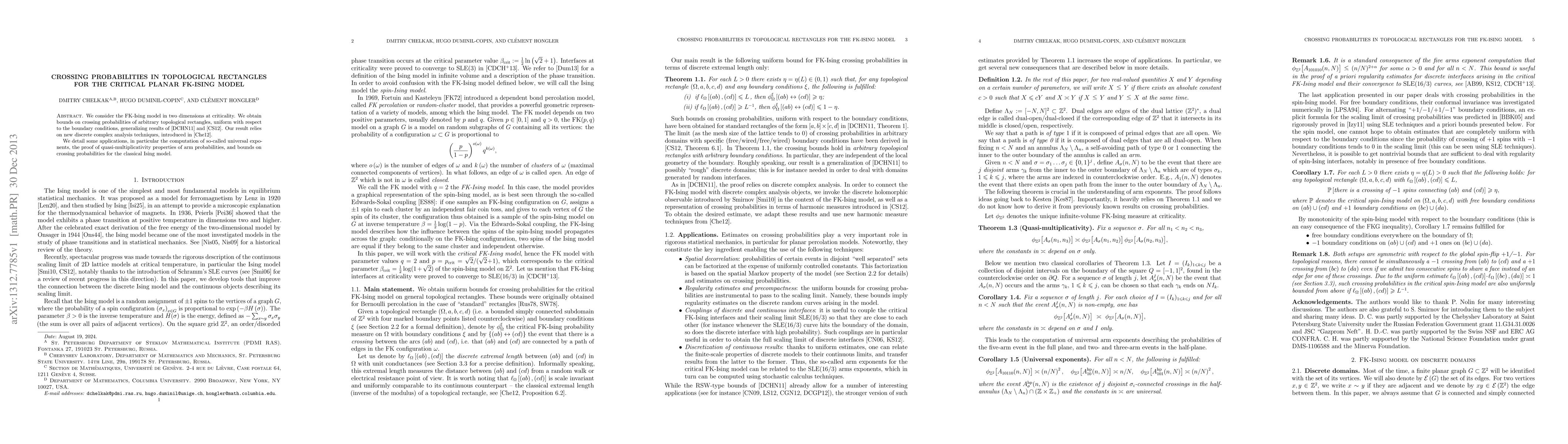 This paper provides bounds on crossing probabilities in topological rectangles for the critical planar FK-Ising model, generalizing previous results using new discrete complex analysis techniques. It also explores applications such as computing universal exponents and proving quasi-multiplicativity properties of arm probabilities.