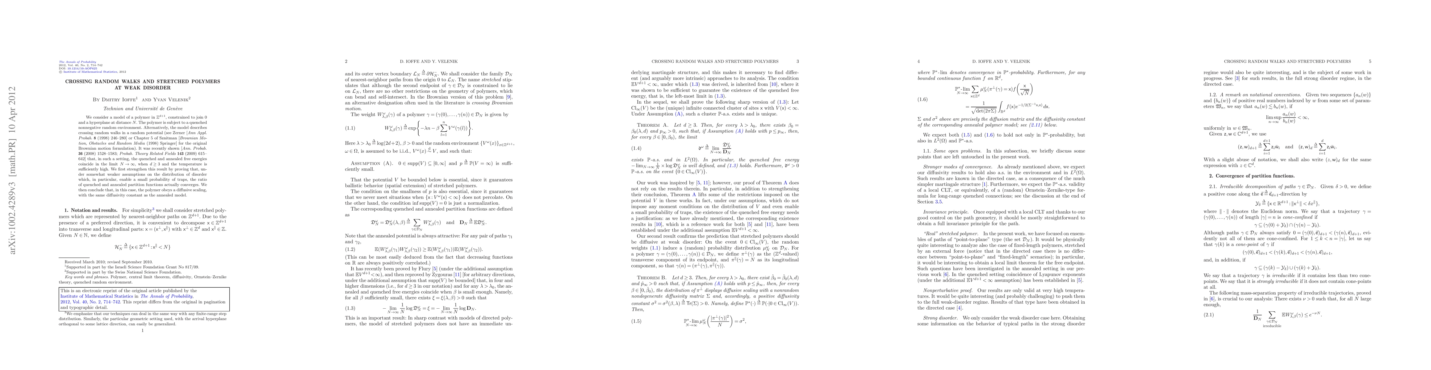 We consider a model of a polymer in $\mathbb{Z}^{d+1}$, constrained to join 0 and a hyperplane at distance $N$. The polymer is subject to a quenched nonnegative random environment. Alternatively, the model describes crossing random walks in a random potential (see Zerner [Ann Appl. Probab. 8 (1998) 246--280] or Chapter 5 of Sznitman [Brownian Motion, Obstacles and Random Media (1998) Springer] for the original Brownian motion formulation). It was recently shown [Ann. Probab. 36 (2008) 1528--1583; Probab. Theory Related Fields 143 (2009) 615--642] that, in such a setting, the quenched and annealed free energies coincide in the limit $N\to\infty$, when $d\geq3$ and the temperature is sufficiently high. We first strengthen this result by proving that, under somewhat weaker assumptions on the distribution of disorder which, in particular, enable a small probability of traps, the ratio of quenched and annealed partition functions actually converges. We then conclude that, in this case, the polymer obeys a diffusive scaling, with the same diffusivity constant as the annealed model.