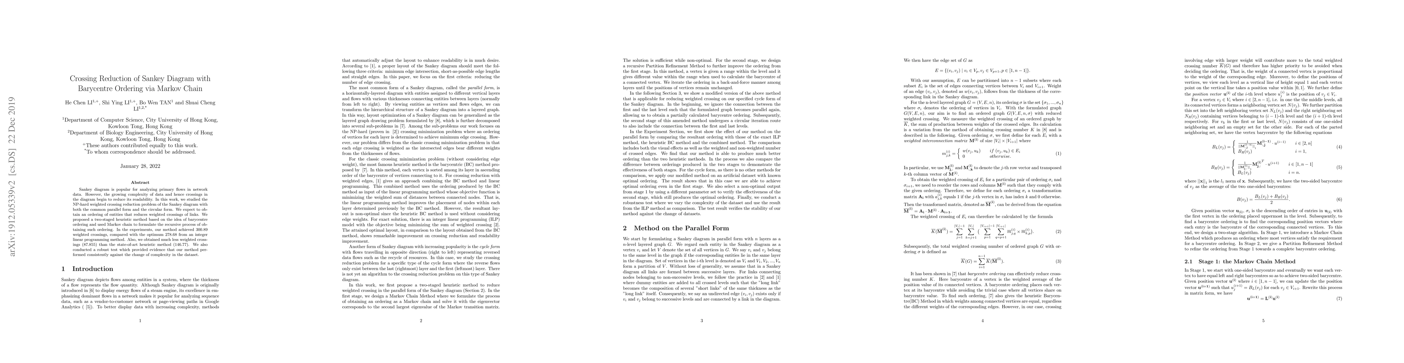 Researchers proposed a new method to reduce crossings in Sankey diagrams, achieving 87.855 weighted crossings compared to the state-of-the-art heuristic method. The approach uses barycentre ordering and Markov chain to improve readability of complex network data.
