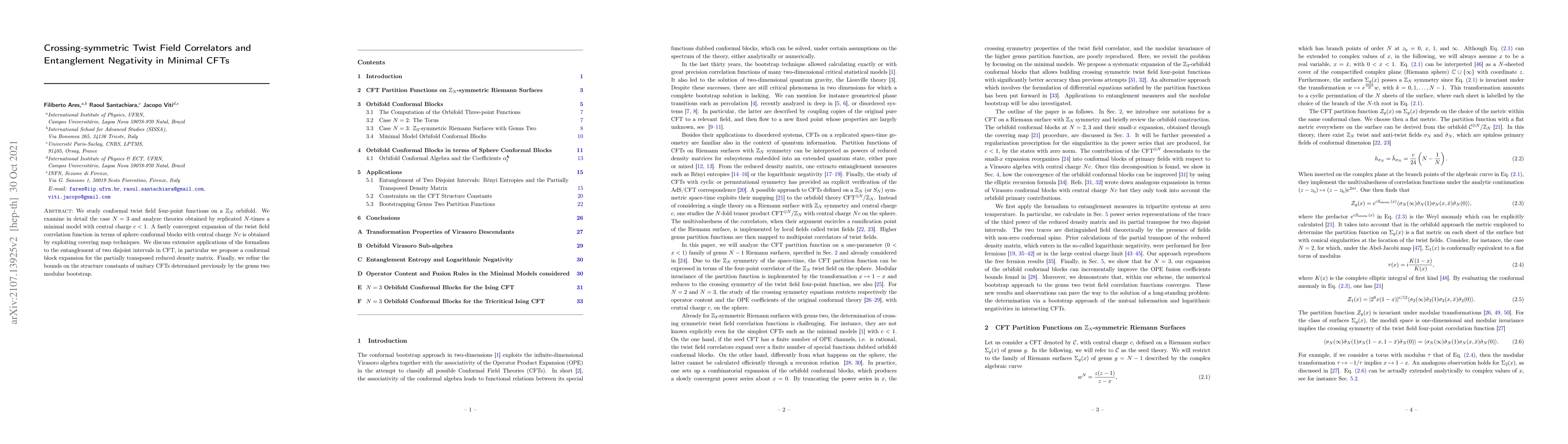 We study conformal twist field four-point functions on a $\mathbb Z_N$ orbifold. We examine in detail the case $N=3$ and analyze theories obtained by replicated $N$-times a minimal model with central charge $c<1$. A fastly convergent expansion of the twist field correlation function in terms of sphere conformal blocks with central charge $Nc$ is obtained by exploiting covering map techniques. We discuss extensive applications of the formalism to the entanglement of two disjoint intervals in CFT, in particular we propose a conformal block expansion for the partially transposed reduced density matrix. Finally, we refine the bounds on the structure constants of unitary CFTs determined previously by the genus two modular bootstrap.