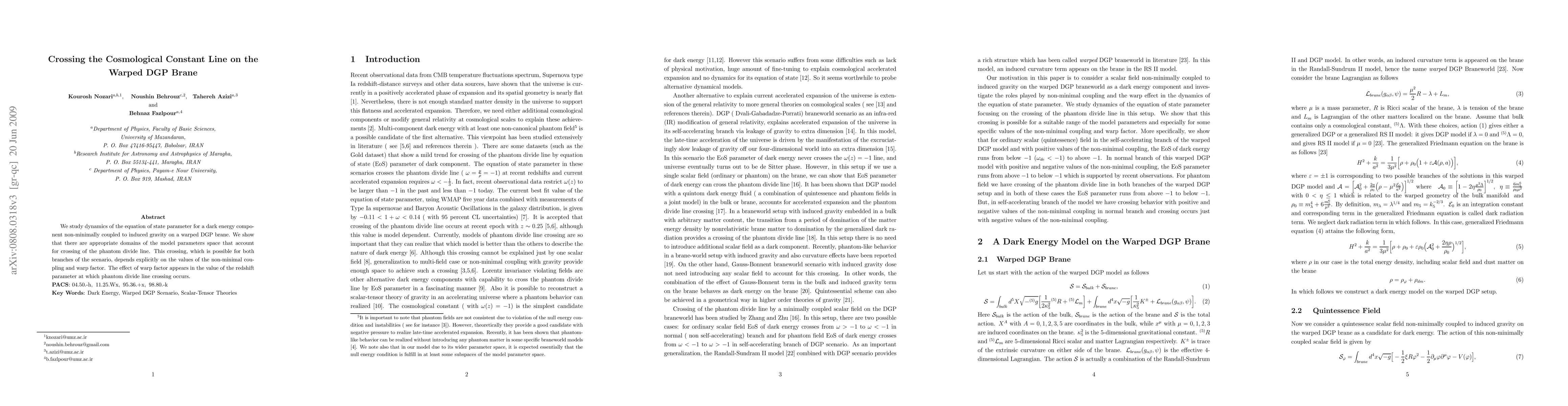 This paper investigates the dynamics of dark energy on a warped DGP brane, demonstrating that specific model parameter domains allow for the crossing of the phantom divide line, influenced by non-minimal coupling and the warp factor. The redshift parameter at which this crossing occurs is determined by the warp factor.