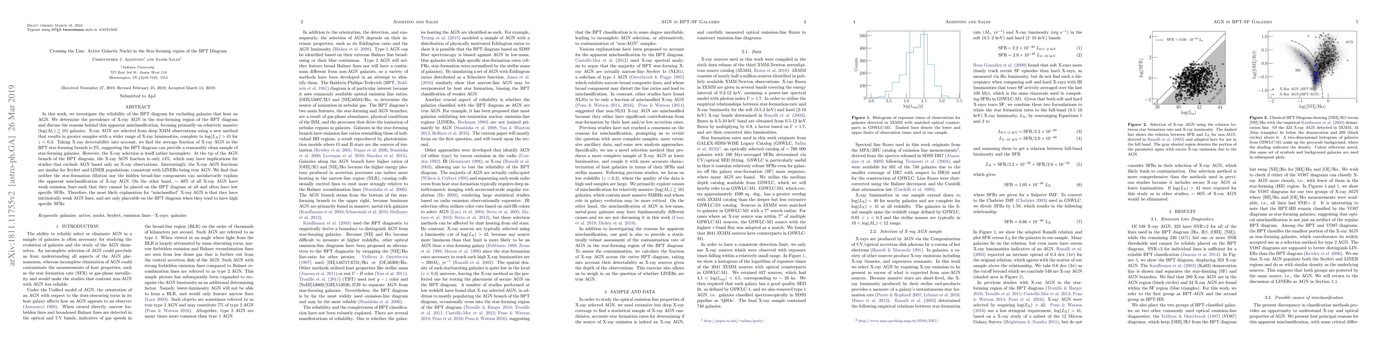 This study examines the reliability of the BPT diagram in distinguishing star-forming galaxies from those hosting active galactic nuclei (AGN), finding that 2% of galaxies in the star-forming region are X-ray AGN. The research suggests that misclassification is likely due to intrinsically weak AGN lines rather than star-formation activity or hidden broad-line components.