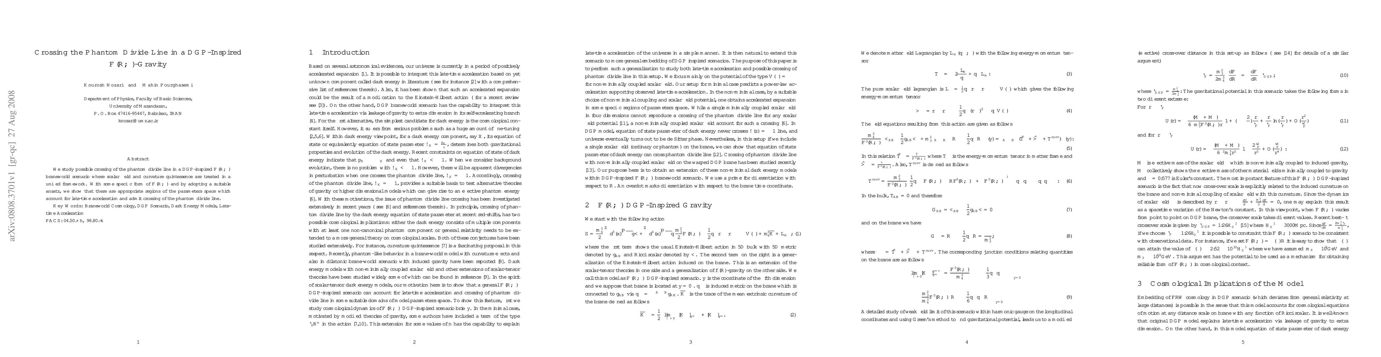 This paper explores the possibility of crossing the phantom divide line in a DGP-inspired $F(R,\phi)$ braneworld model, demonstrating that specific forms of $F(R,\phi)$ and parameter choices can lead to late-time acceleration and phantom divide line crossing.