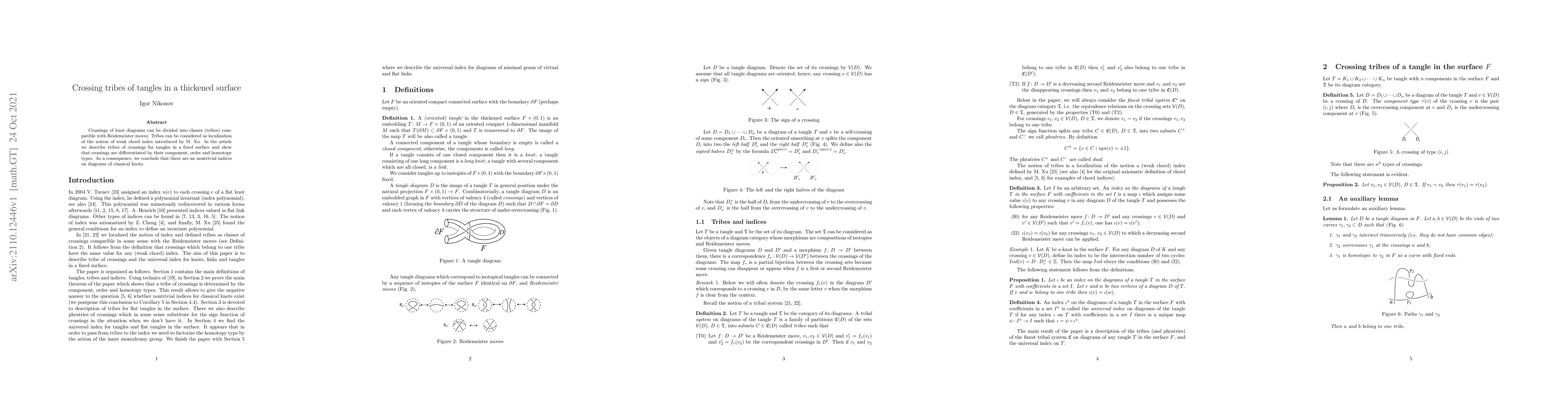 Crossings of knot diagrams can be divided into classes (tribes) compatible with Reidemeister moves. Tribes can be considered as localization of the notion of weak chord index introduced by M. Xu. In the article we describe tribes of crossings for tangles in a fixed surface and show that crossings are differentiated by their component, order and homotopy types. As a consequence, we conclude that there are no nontrivial indices on diagrams of classical knots.