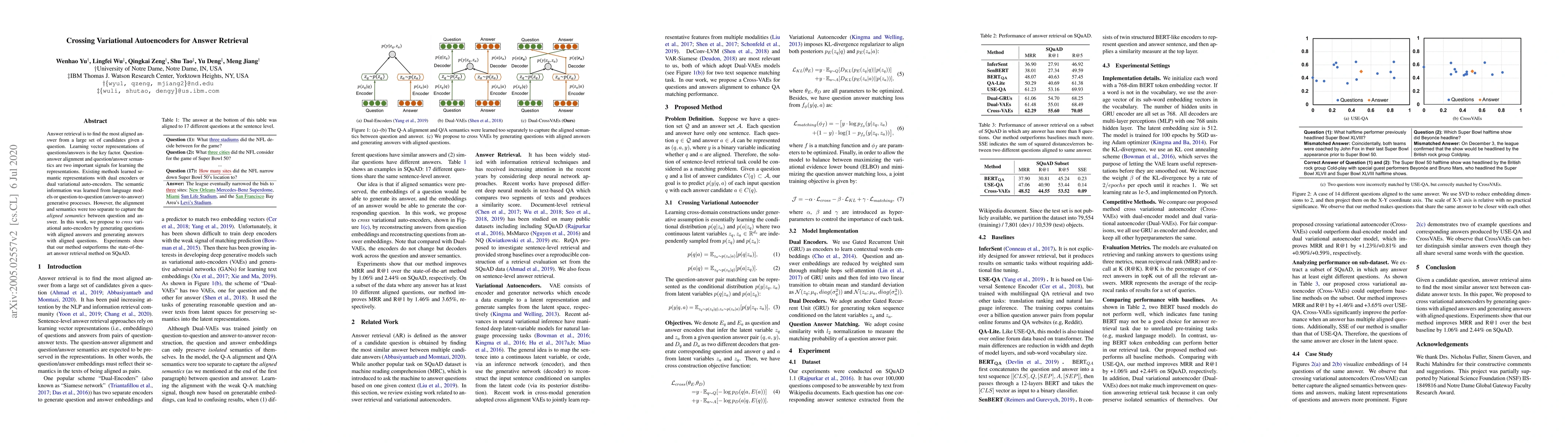 This research paper proposes a new method for answer retrieval using Variational Autoencoders, which generates aligned questions and answers to capture semantic alignment between them, outperforming state-of-the-art methods on the SQuAD dataset.