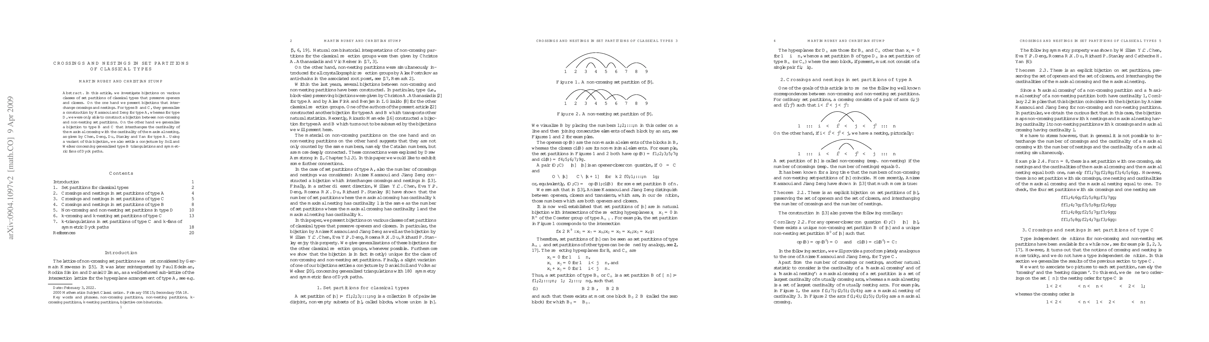 This paper explores bijections on set partitions that preserve openers and closers, focusing on those that interchange crossings and nestings. It generalizes previous work on type A to types B and C, while only constructing a bijection for non-crossing and non-nesting partitions for type D. It also extends a type A bijection to types B and C, and resolves a conjecture on generalized type B triangulations and symmetric fans of Dyck paths.