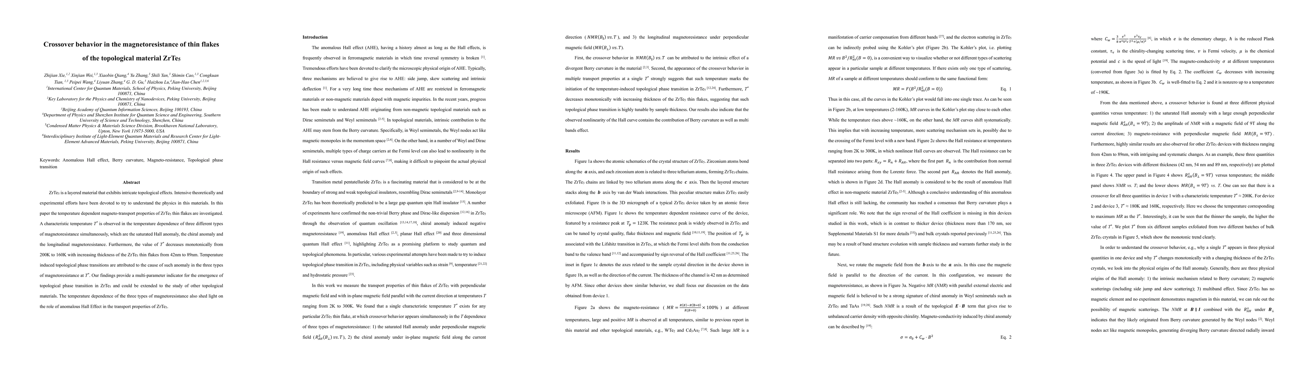This paper investigates the temperature-dependent magnetoresistance in ZrTe5 thin flakes, revealing a characteristic temperature T* linked to topological phase transitions. The study finds that T* decreases with increasing flake thickness, providing insights into the role of the anomalous Hall Effect in ZrTe5's transport properties.