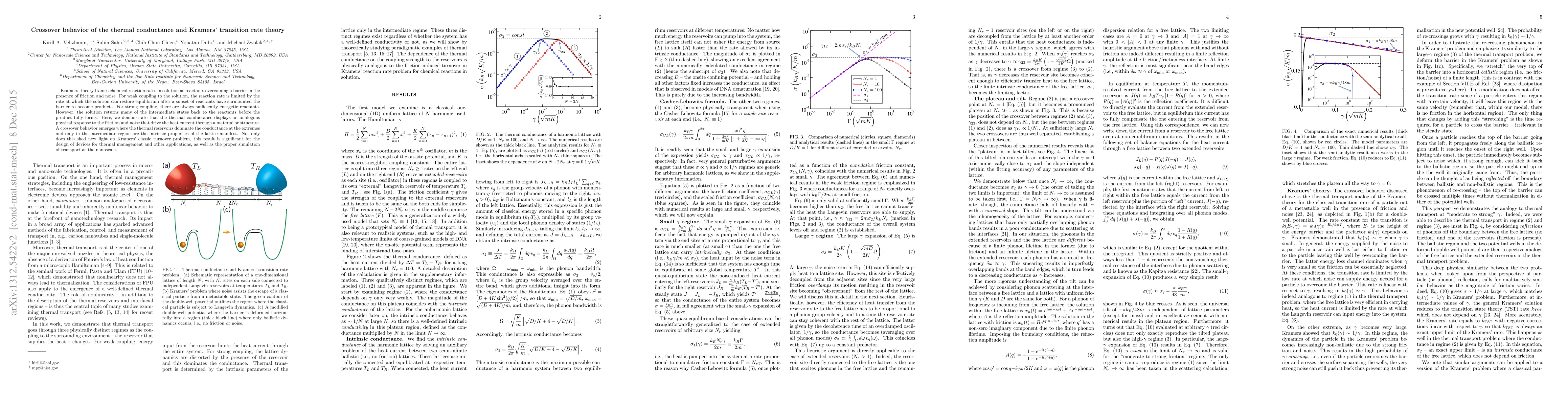 Kramers' theory frames chemical reaction rates in solution as reactants overcoming a barrier in the presence of friction and noise. For weak coupling to the solution, the reaction rate is limited by the rate at which the solution can restore equilibrium after a subset of reactants have surmounted the barrier to become products. For strong coupling, there are always sufficiently energetic reactants. However, the solution returns many of the intermediate states back to the reactants before the product fully forms. Here, we demonstrate that the thermal conductance displays an analogous physical response to the friction and noise that drive the heat current through a material or structure. A crossover behavior emerges where the thermal reservoirs dominate the conductance at the extremes and only in the intermediate region are the intrinsic properties of the lattice manifest. Not only does this shed new light on Kramers' classic turnover problem, this result is significant for the design of devices for thermal management and other applications, as well as the proper simulation of transport at the nanoscale.