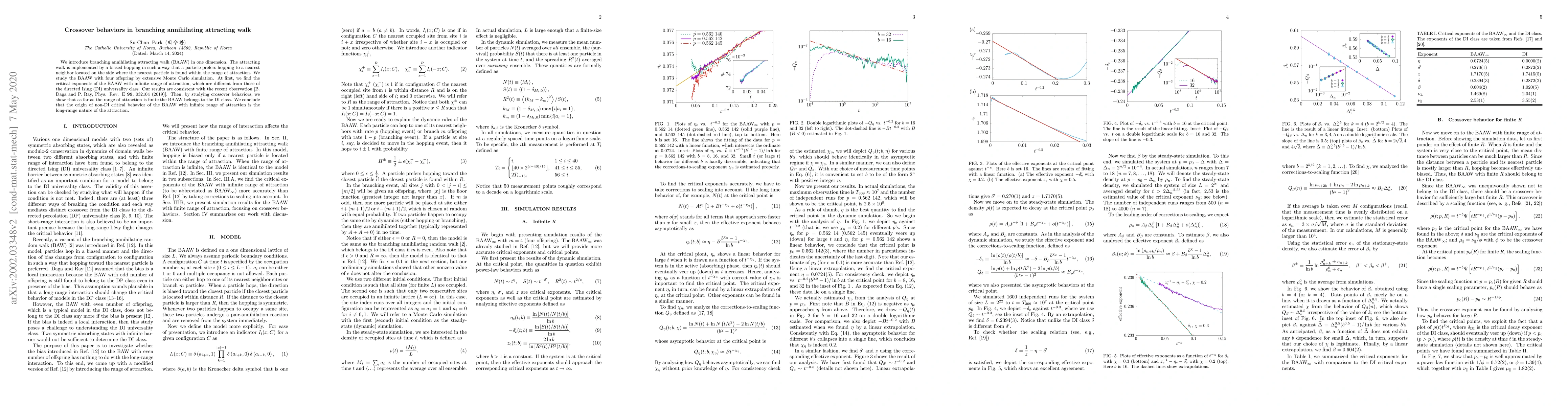 We introduce branching annihilating attracting walk (BAAW) in one dimension. The attracting walk is implemented by a biased hopping in such a way that a particle prefers hopping to a nearest neighbor located on the side where the nearest particle is found within the range of attraction. We study the BAAW with four offspring by extensive Monte Carlo simulation. At first, we find the critical exponents of the BAAW with infinite range of attraction, which are different from those of the directed Ising (DI) universality class. Our results are consistent with the recent observation [B. Daga and P. Ray, Phys. Rev. E {\bf 99}, 032104 (2019)]. Then, by studying crossover behaviors, we show that as far as the range of attraction is finite the BAAW belongs to the DI class. We conclude that the origin of non-DI critical behavior of the BAAW with infinite range of attraction is the long-range nature of the attraction.