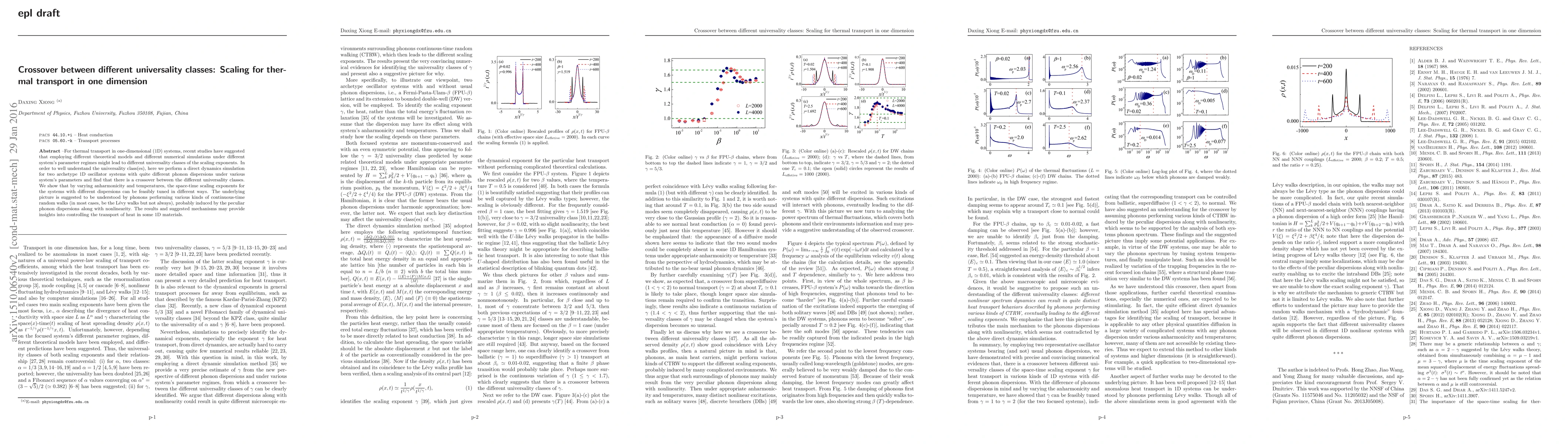 This paper investigates thermal transport in one-dimensional systems, demonstrating that varying anharmonicity and temperature can lead to a crossover between different universality classes of scaling exponents. The study suggests that phonons exhibit various types of continuous-time random walks, potentially offering insights into controlling heat transport in 1D materials.
