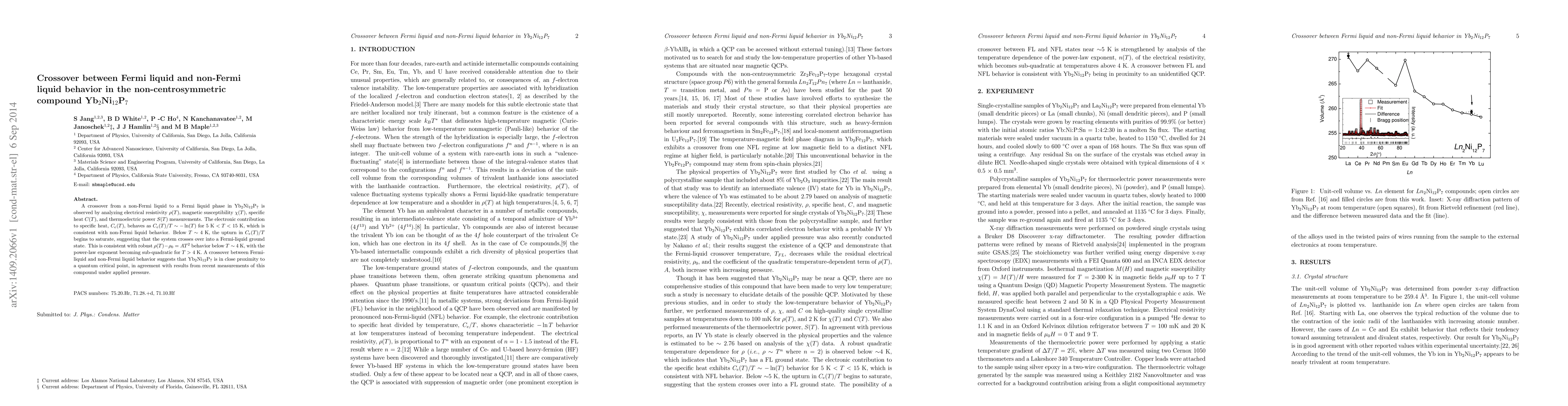 The compound Yb$_2$Ni$_{12}$P$_7$ exhibits a crossover from non-Fermi liquid to Fermi liquid behavior, as evidenced by measurements of resistivity, magnetic susceptibility, specific heat, and thermoelectric power. Below 4 K, the system transitions to a Fermi liquid state, suggesting proximity to a quantum critical point.