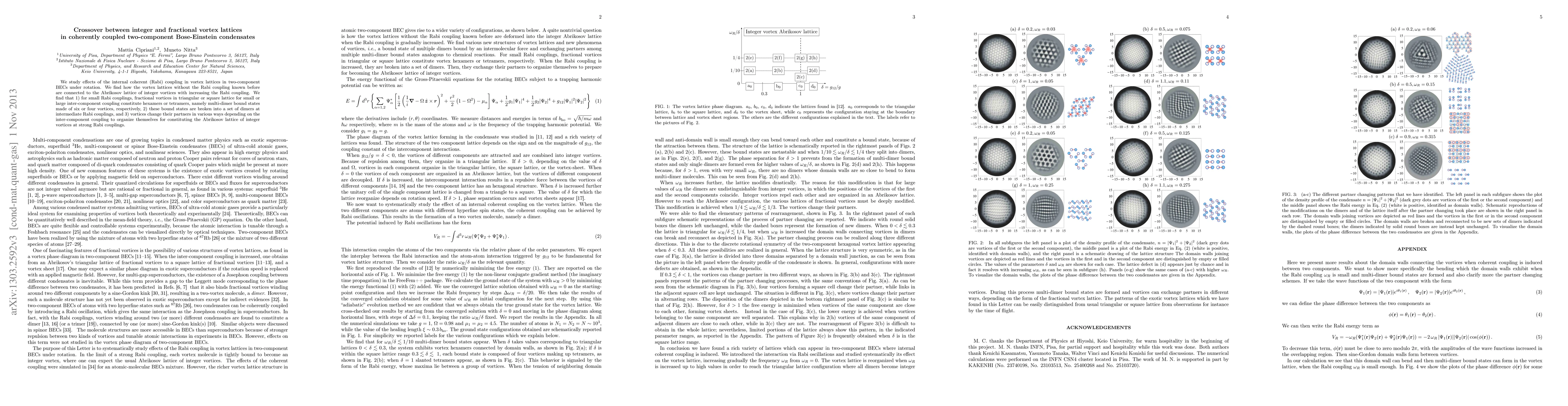 We study effects of the internal coherent (Rabi) coupling in vortex lattices in two-component BECs under rotation. We find how the vortex lattices without the Rabi coupling known before are connected to the Abrikosov lattice of integer vortices with increasing the Rabi coupling. We find that 1) for small Rabi couplings, fractional vortices in triangular or square lattice for small or large inter-component coupling constitute hexamers or tetramers, namely multi-dimer bound states made of six or four vortices, respectively, 2) these bound states are broken into a set of dimers at intermediate Rabi couplings, and 3) vortices change their partners in various ways depending on the inter-component coupling to organize themselves for constituting the Abrikosov lattice of integer vortices at strong Rabi couplings.