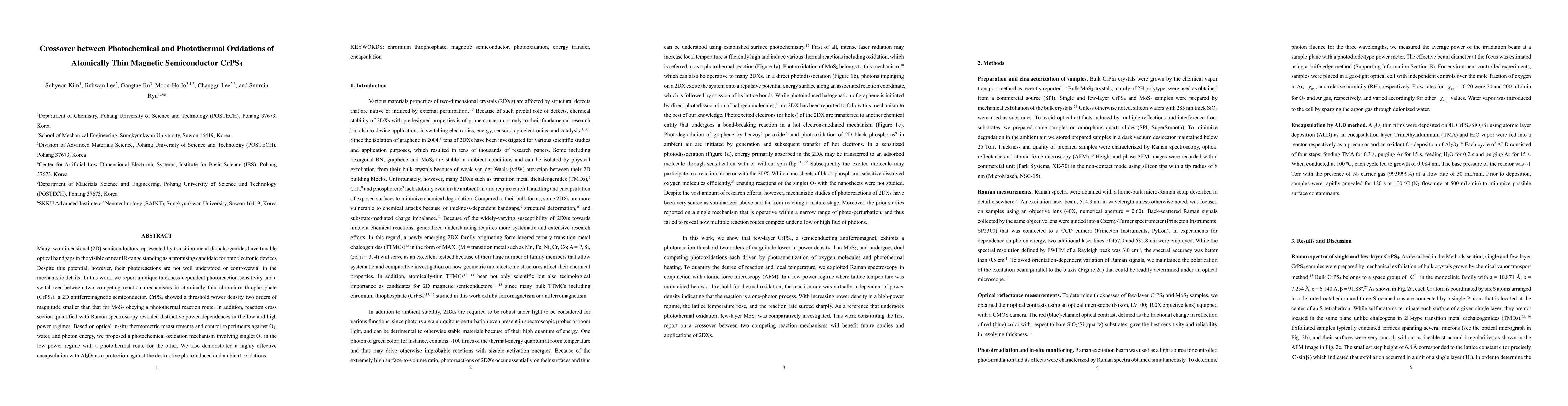 This paper explores the distinct photoreaction mechanisms in atomically thin CrPS4, revealing a crossover between photochemical and photothermal oxidations depending on power density. The study proposes a photochemical pathway involving singlet O2 at low power and a photothermal route at higher power, with effective protection against oxidation using Al2O3 encapsulation.