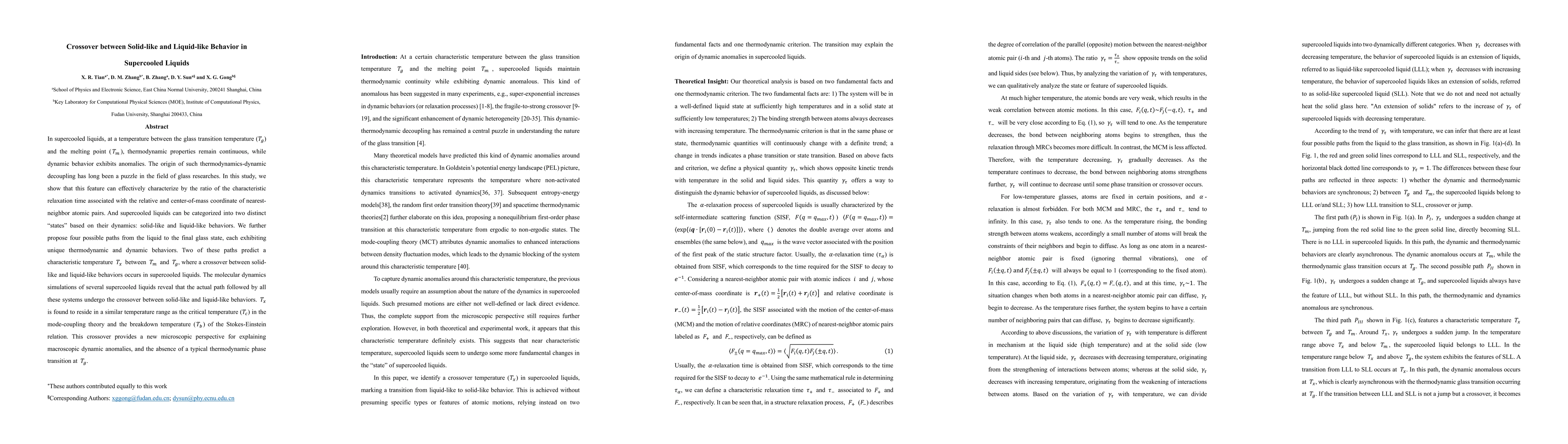 Researchers identify two distinct states in supercooled liquids based on their dynamic behavior, proposing a crossover temperature where solid-like and liquid-like behaviors occur, providing new insights into macroscopic anomalies and the absence of a thermodynamic phase transition at the glass transition temperature.