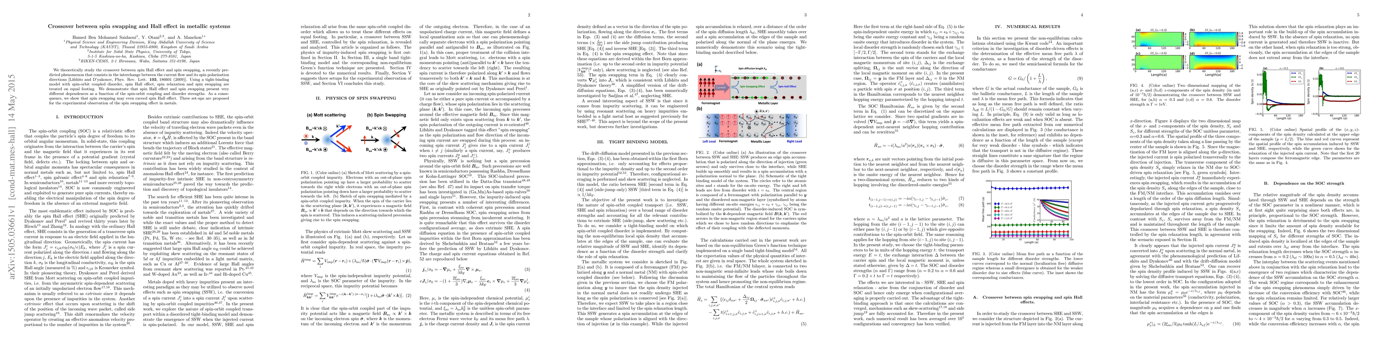 The research employs a tight-binding model with spin-orbit coupled disorder to theoretically study the crossover between the spin Hall effect and spin swapping, treating all three phenomena on equal footing.