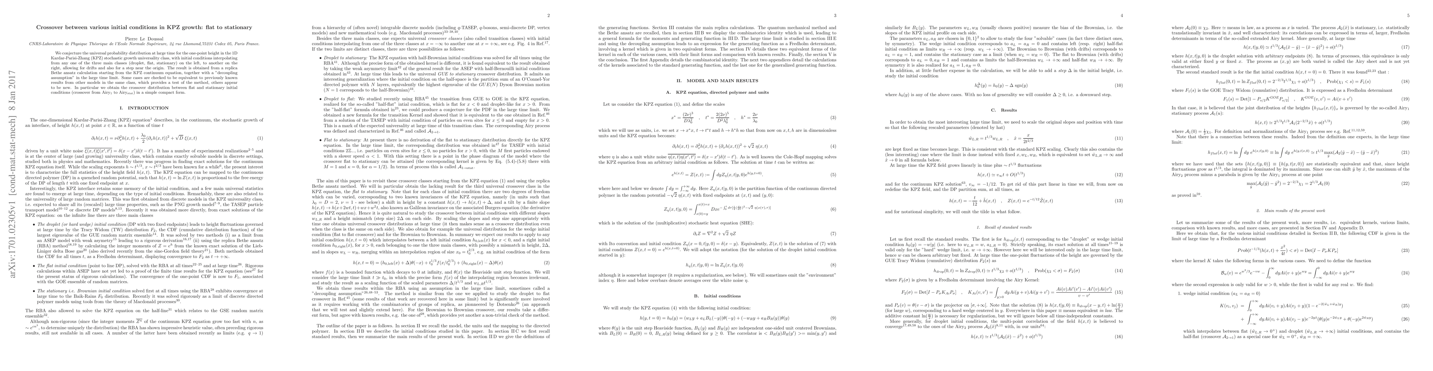 This paper proposes a universal probability distribution for the one-point height in the 1D KPZ growth model, focusing on the transition between different initial conditions, including a novel crossover from flat to stationary states. The findings are derived from a replica Bethe ansatz calculation and validated by comparing known results from other models.