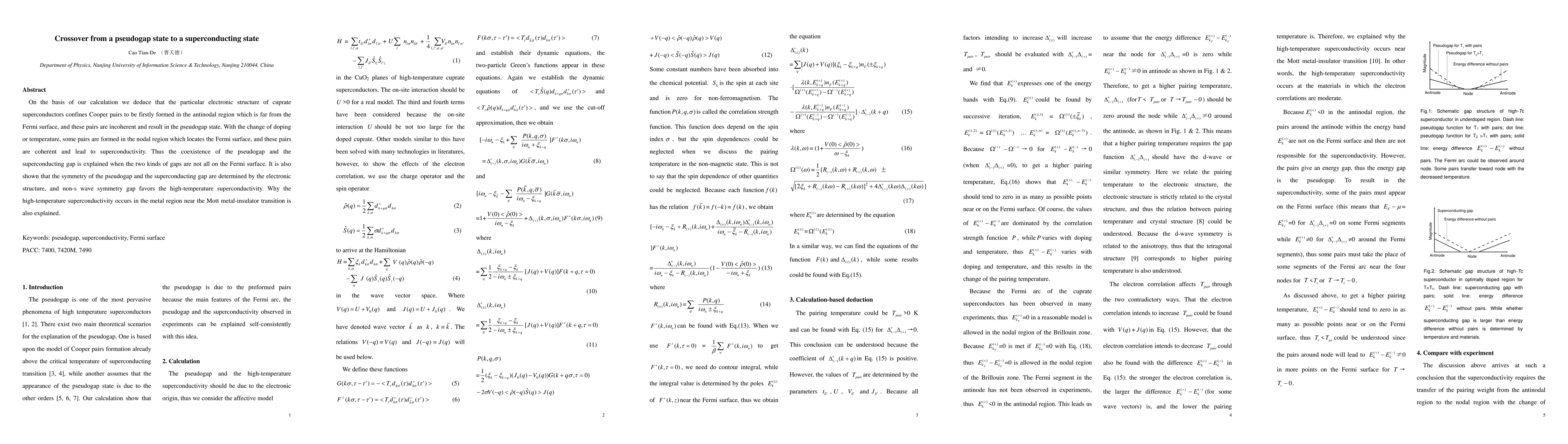 On the basis of our calculation we deduce that the particular electronic structure of cuprate superconductors confines Cooper pairs to be firstly formed in the antinodal region which is far from the Fermi surface, and these pairs are incoherent and result in the pseudogap state. With the change of doping or temperature, some pairs are formed in the nodal region which locates the Fermi surface, and these pairs are coherent and lead to superconductivity. Thus the coexistence of the pseudogap and the superconducting gap is explained when the two kinds of gaps are not all on the Fermi surface. It is also shown that the symmetry of the pseudogap and the superconducting gap are determined by the electronic structure, and non-s wave symmetry gap favors the high-temperature superconductivity. Why the high-temperature superconductivity occurs in the metal region near the Mott metal-insulator transition is also explained.