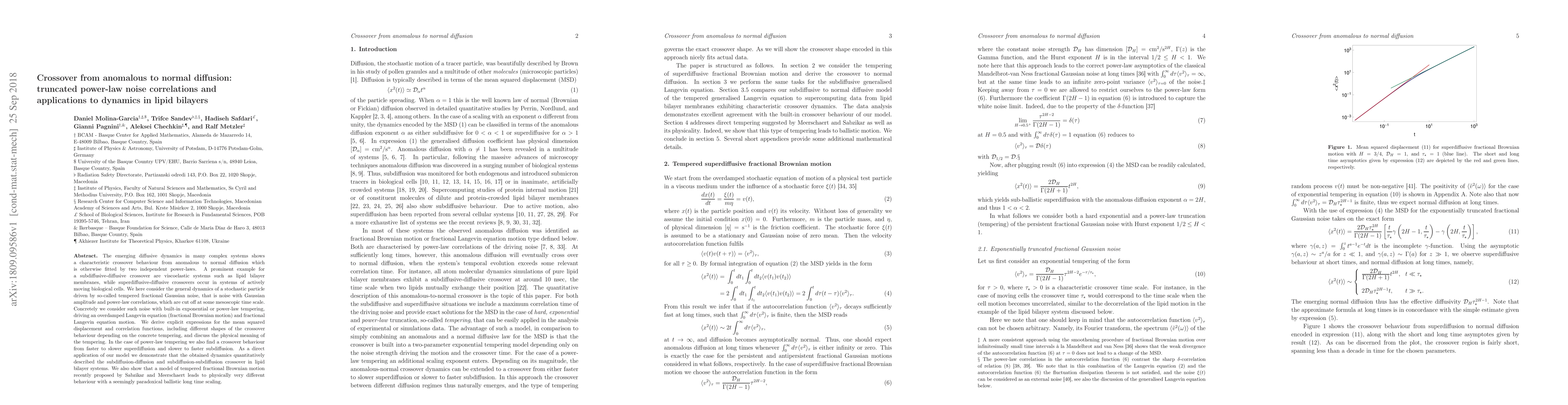 This paper investigates the crossover behavior from anomalous to normal diffusion in viscoelastic systems, specifically lipid bilayer membranes, driven by truncated power-law noise. It derives expressions for mean squared displacement and correlation functions, demonstrating the dynamics' applicability to lipid bilayers and contrasting it with a previously proposed model.