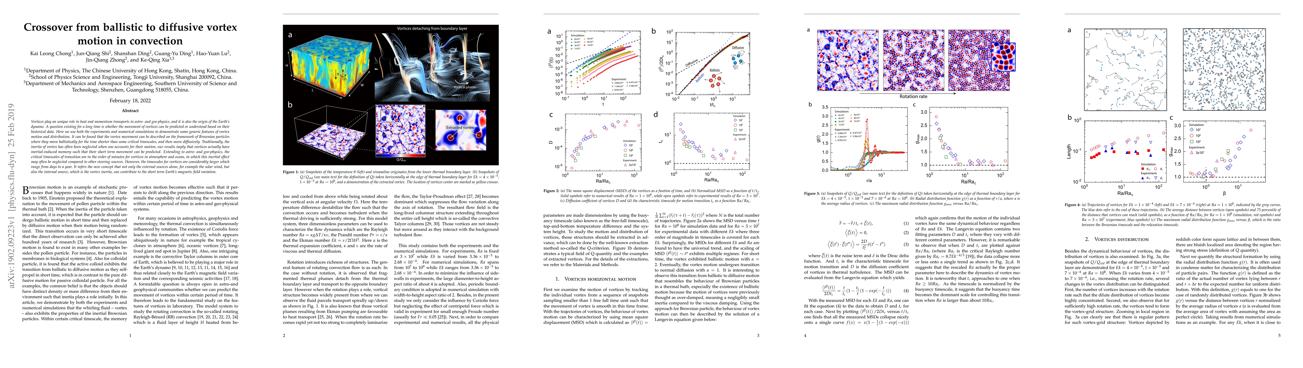 Vortices play an unique role in heat and momentum transports in astro- and geo-physics, and it is also the origin of the Earth's dynamo. A question existing for a long time is whether the movement of vortices can be predicted or understood based on their historical data. Here we use both the experiments and numerical simulations to demonstrate some generic features of vortex motion and distribution. It can be found that the vortex movement can be described on the framework of Brownian particles where they move ballistically for the time shorter than some critical timescales, and then move diffusively. Traditionally, the inertia of vortex has often been neglected when one accounts for their motion, our results imply that vortices actually have inertial-induced memory such that their short term movement can be predicted. Extending to astro- and geo-physics, the critical timescales of transition are in the order of minutes for vortices in atmosphere and ocean, in which this inertial effect may often be neglected compared to other steering sources. However, the timescales for vortices are considerably larger which range from days to a year. It infers the new concept that not only the external sources alone, for example the solar wind, but also the internal source, which is the vortex inertia, can contribute to the short term Earth's magnetic field variation.