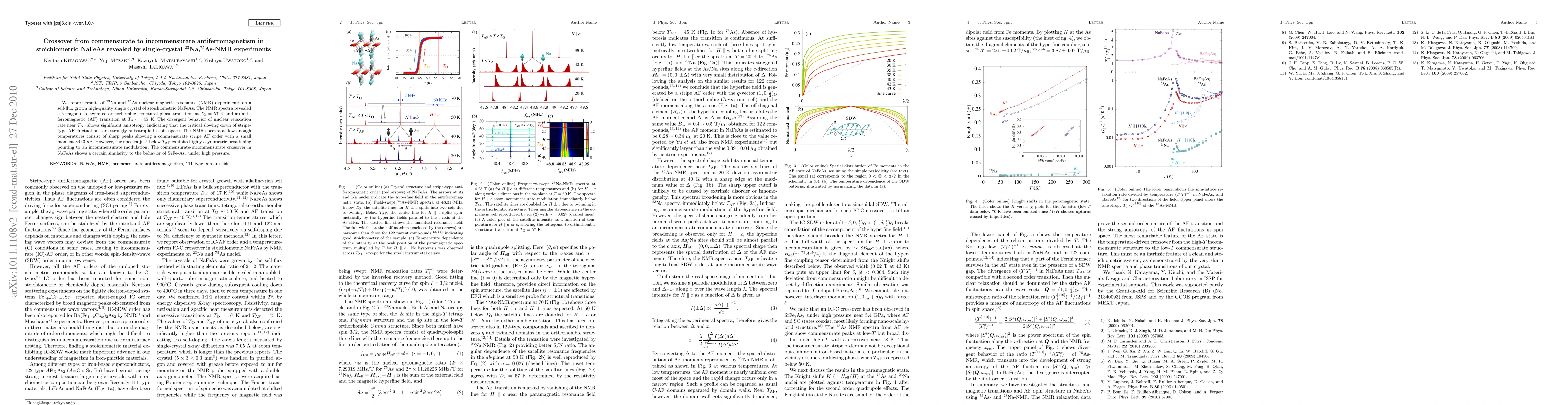 This study reveals a structural and magnetic phase transition in stoichiometric NaFeAs via 23Na and 75As NMR experiments, showing a transition from commensurate to incommensurate antiferromagnetism below 45 K, with significant anisotropy in spin fluctuations.