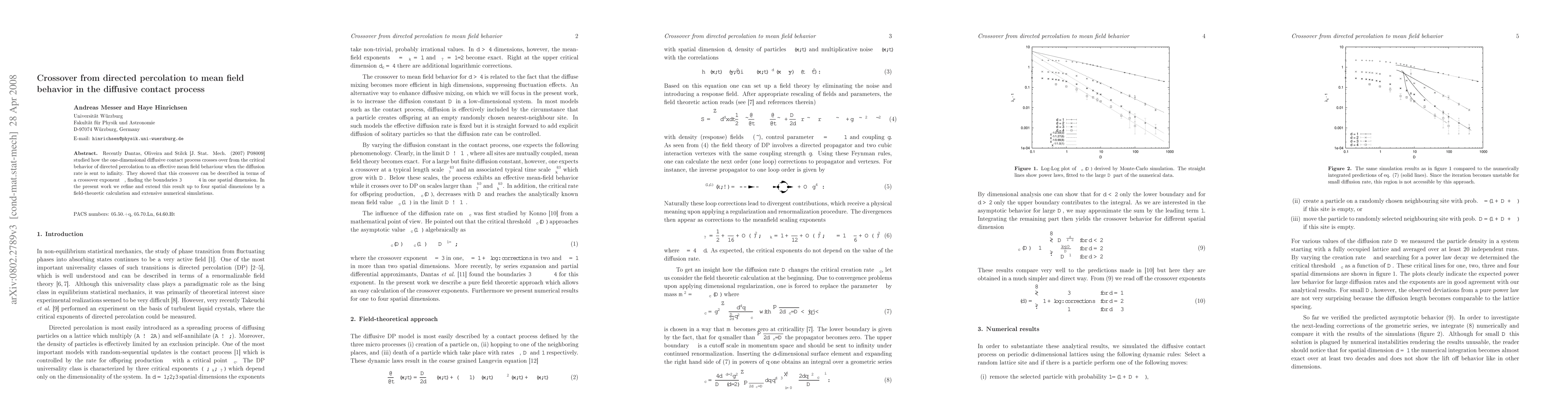 This paper refines and extends the study of the crossover from directed percolation to mean field behavior in the diffusive contact process, originally investigated in one dimension, to higher dimensions up to four. It employs field-theoretic calculations and numerical simulations to determine the crossover exponent $\phi$ and its boundaries.