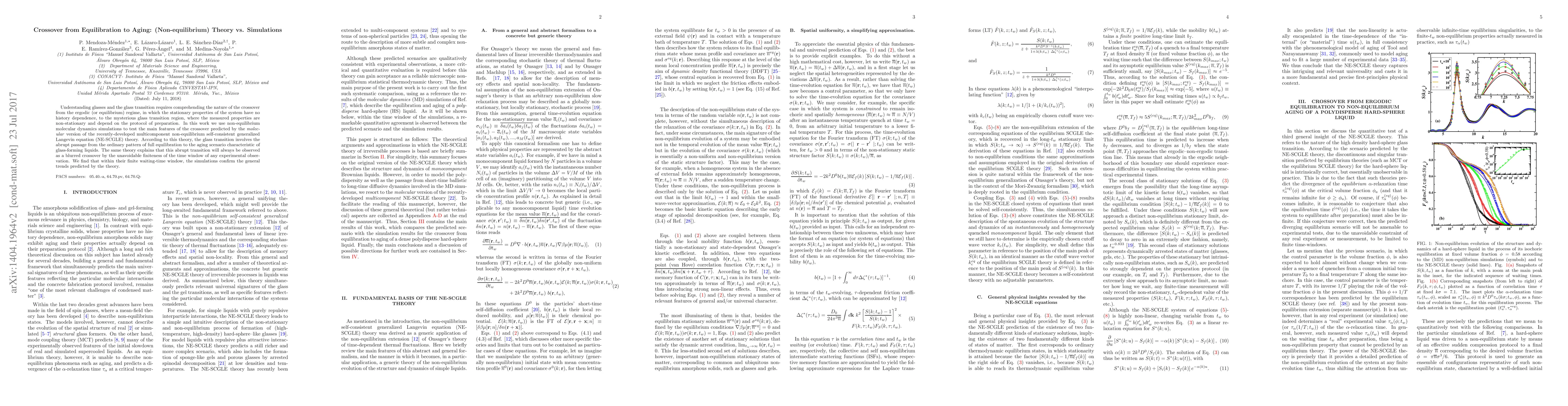 Understanding glasses and the glass transition requires comprehending the nature of the crossover from the ergodic (or equilibrium) regime, in which the stationary properties of the system have no history dependence, to the mysterious glass transition region, where the measured properties are non-stationary and depend on the protocol of preparation. In this work we use non-equilibrium molecular dynamics simulations to test the main features of the crossover predicted by the \emph{molecular} version of the recently-developed multicomponent non-equilibrium self-consistent generalized Langevin equation (NE-SCGLE) theory. According to this theory, the glass transition involves the abrupt passage from the ordinary pattern of full equilibration to the aging scenario characteristic of glass-forming liquids. The same theory explains that this abrupt transition will always be observed as a blurred crossover by the unavoidable finiteness of the time window of any experimental observation. We find that within their finite waiting-time window, the simulations confirm the general trends predicted by the theory.
