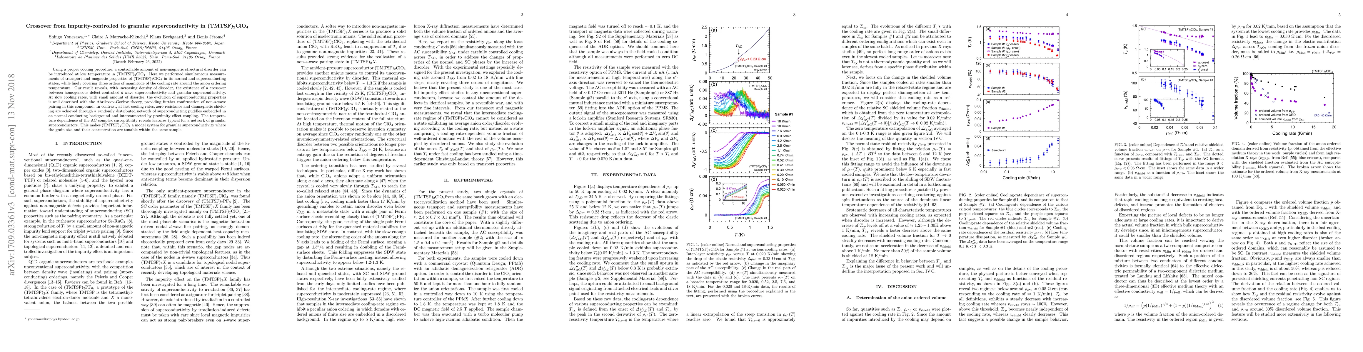 This paper explores the transition from impurity-controlled to granular superconductivity in (TMTSF)2ClO4 via controlled structural disorder. It finds that slow cooling leads to d-wave superconductivity, while fast cooling results in a granular network of superconducting puddles, demonstrating tunable grain size and concentration.