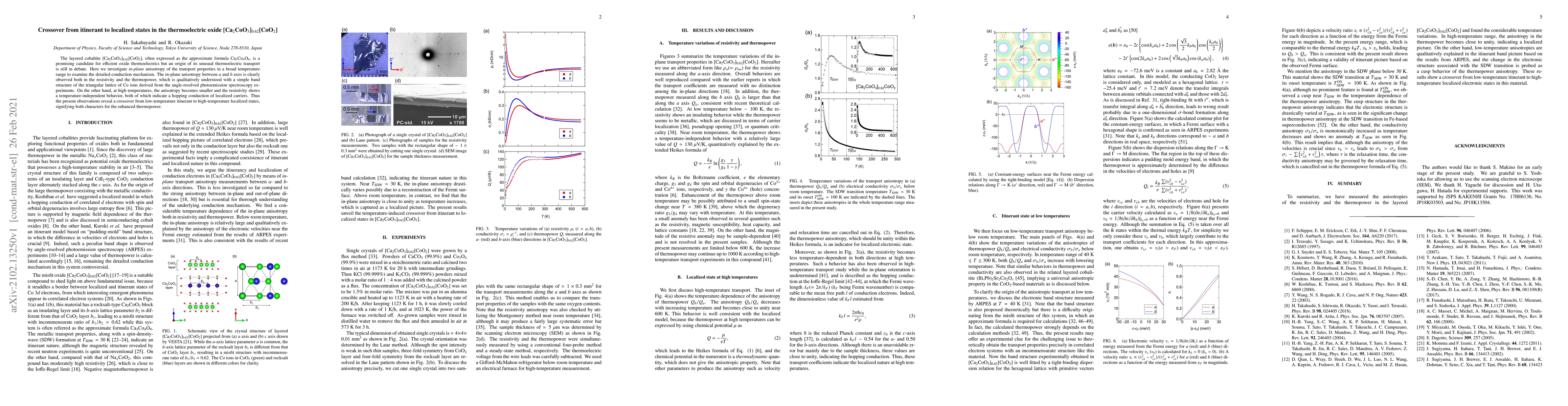 This paper explores the thermoelectric properties of the layered cobaltite Ca$_3$Co$_4$O$_9$, revealing an in-plane anisotropy in resistivity and thermopower that indicates a transition from itinerant to localized conduction states with increasing temperature. The findings suggest enhanced thermopower due to both conduction mechanisms.