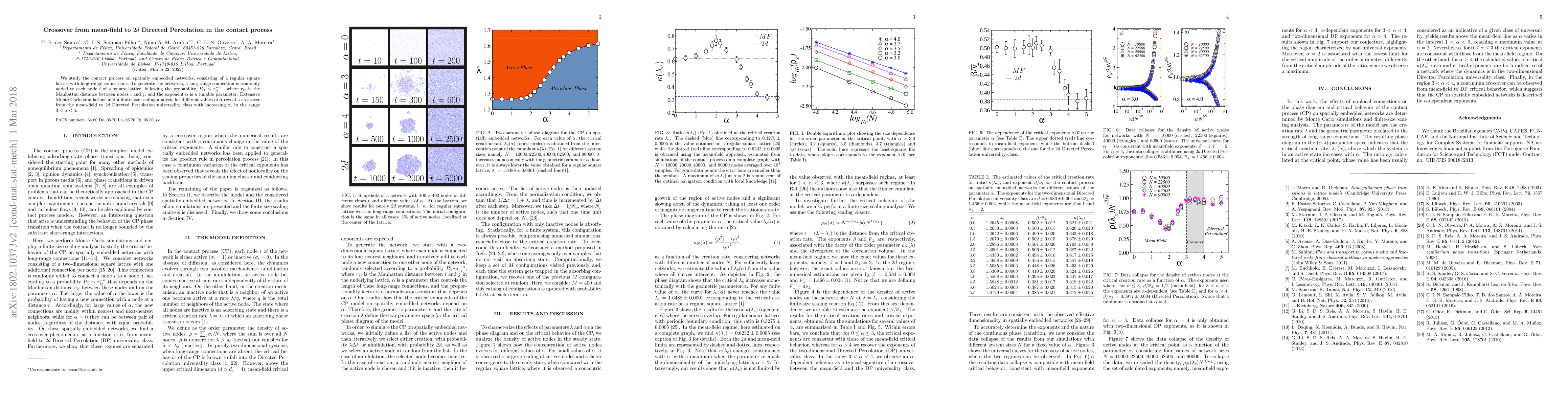 We study the contact process on spatially embedded networks, consisting of a regular square lattice with long-range connections. To generate the networks, a long-range connection is randomly added to each node $i$ of a square lattice, following the probability, $P_{ij}\sim{r_{ij}^{-\alpha}}$ , where $r_{ij}$ is the Manhattan distance between nodes $i$ and $j$, and the exponent $\alpha$ is a tunable parameter. Extensive Monte Carlo simulations and a finite-size scaling analysis for different values of $\alpha$ reveal a crossover from the mean-field to $2d$ Directed Percolation universality class with increasing $\alpha$, in the range $3<\alpha<4$.